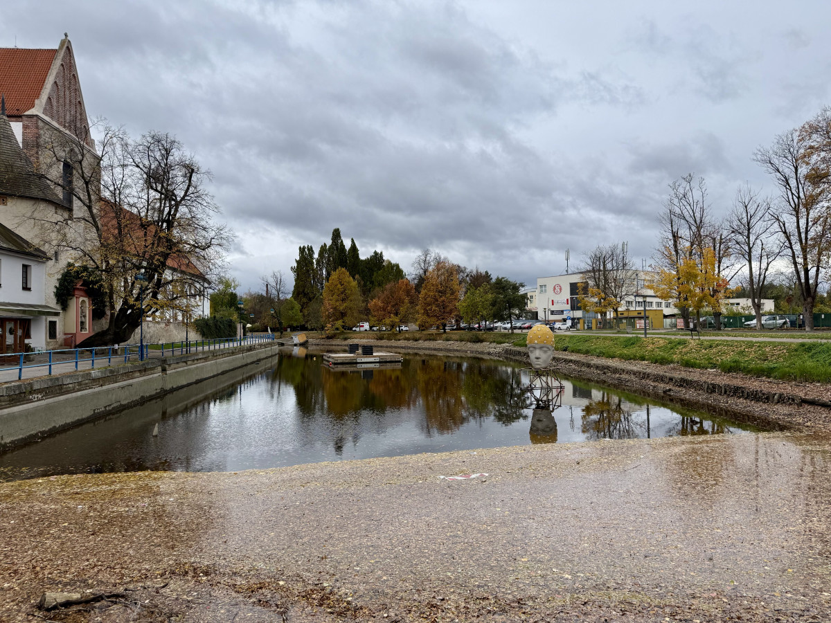 Budějovické řeky odhalují tajemství. Snížené hladiny obnažily kamenité břehy, sochu i Malý jez