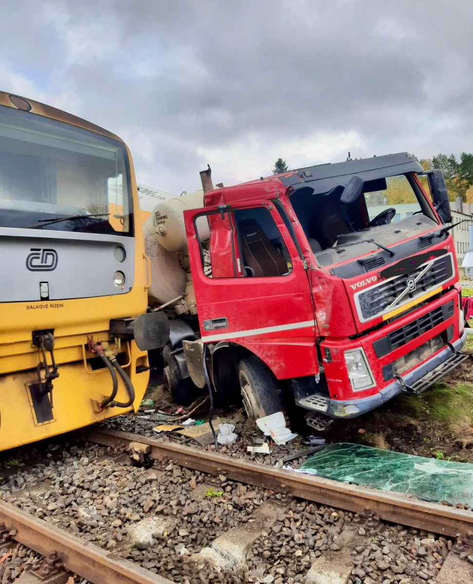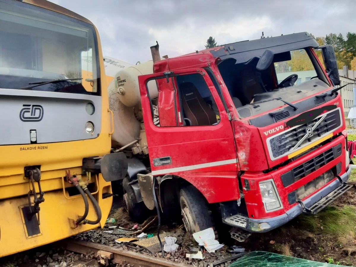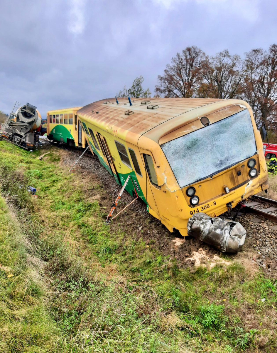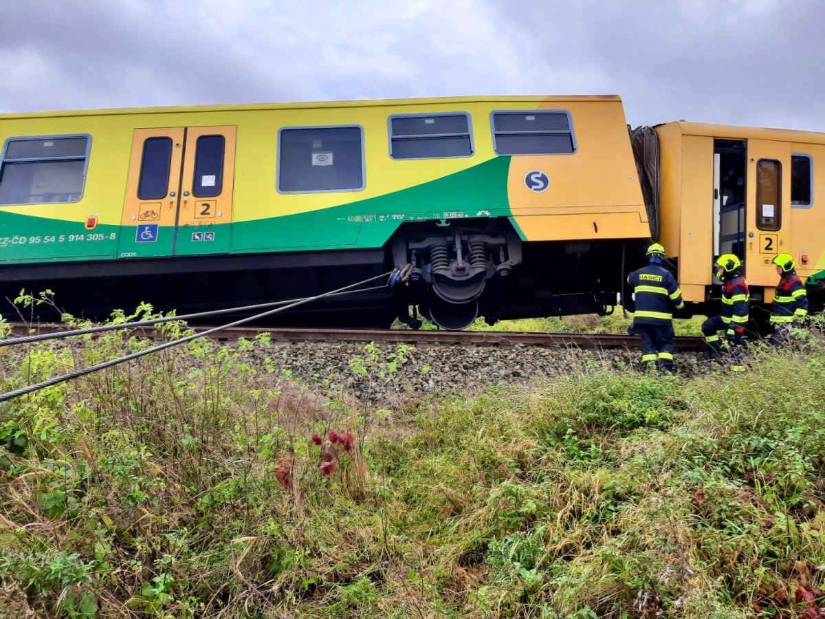 Na Táborsku vykolejil po srážce s náklaďákem vlak. Strojvedoucí je zraněný