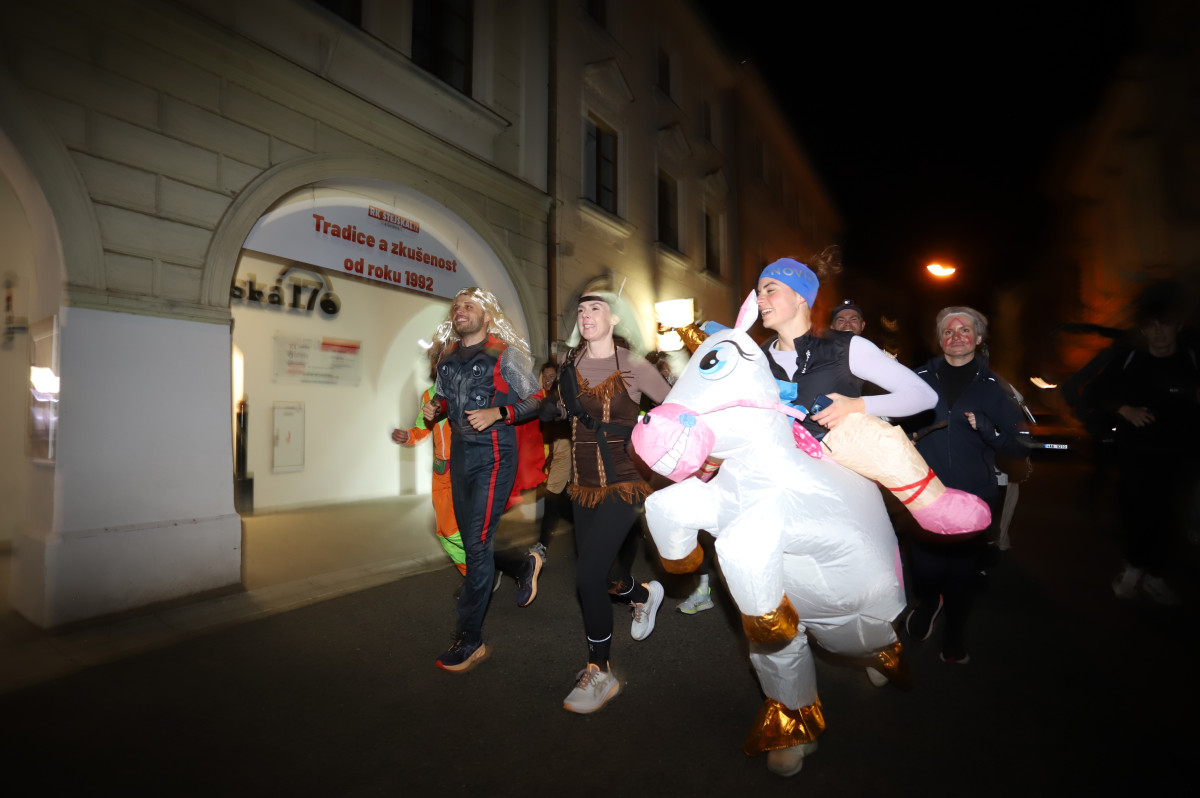 V Budějovicích se běžel Halloween! Ulice zaplnili běžci v maskách i pes převlečený za ovečku