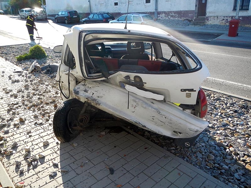 Do zaparkovaného Opelu Corsa narazil Volkswagen Passat