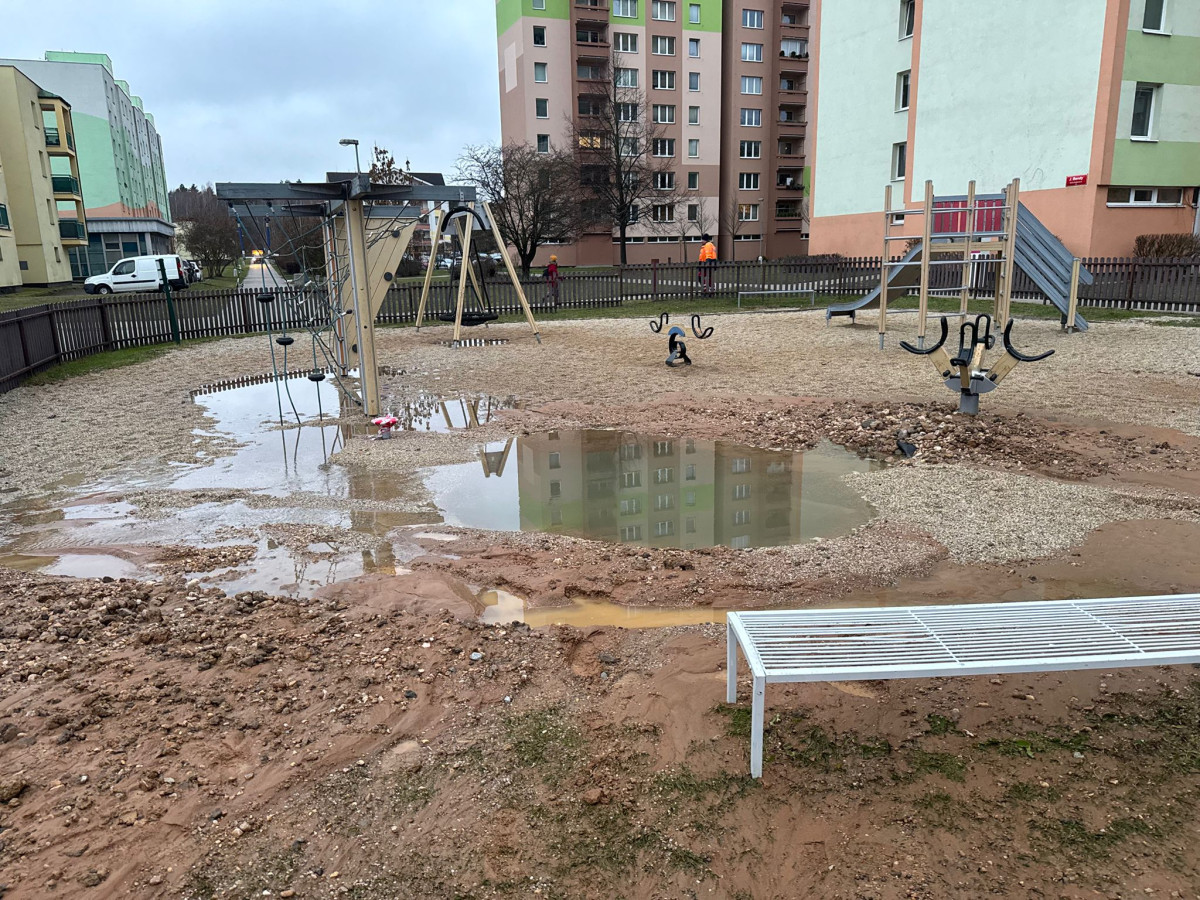 V Dubenské ulici prasklo vodovodní potrubí, oprava uzavřela dětské hřiště