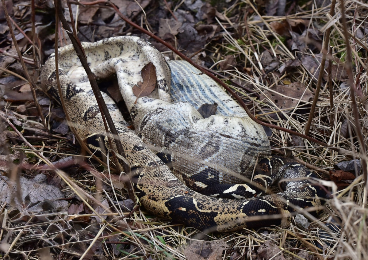 Neobvyklý nález u Budějovic. Ve křoví ležel dvoumetrový hroznýš