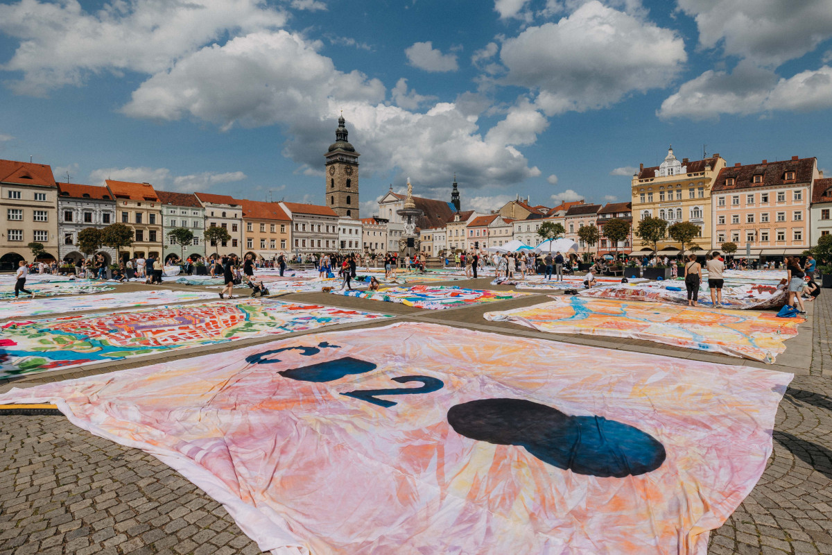 Slavnost Soutok byla zahájena akcí Obraz pro moje město, během níž se na náměstí Přemysla Otakara II. představilo prostřednictvím svých maleb celkem 95 organizací z Českých Budějovic. Foto Pavel Balek