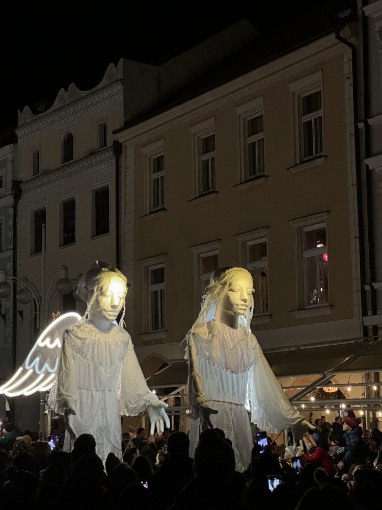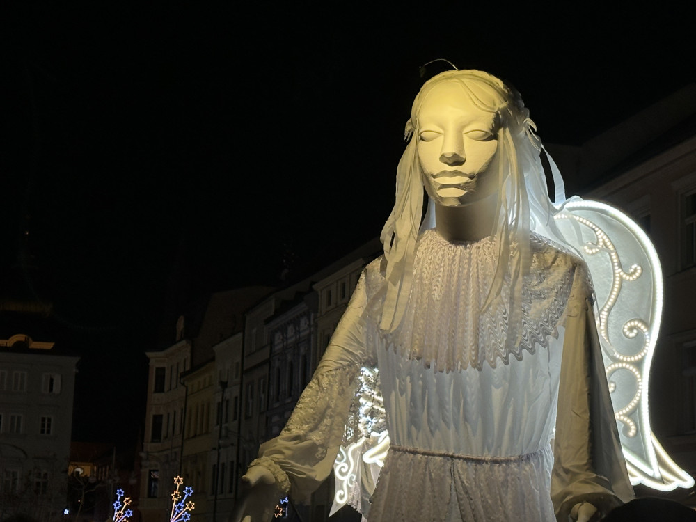 Na budějovickém náměstí opět přistál anděl, přinesl poselství o lásce a pochválil krásu města