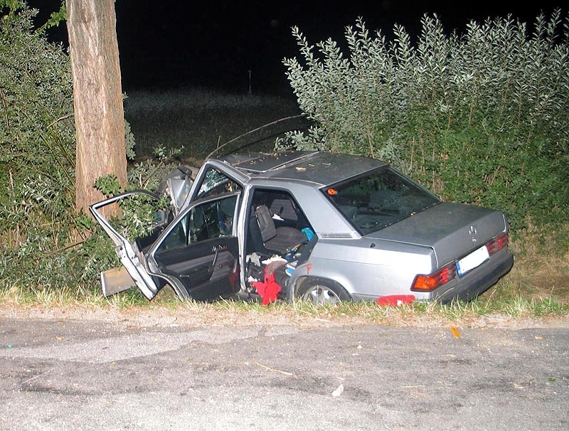 Náraz mercedesu do stromu u Vidova