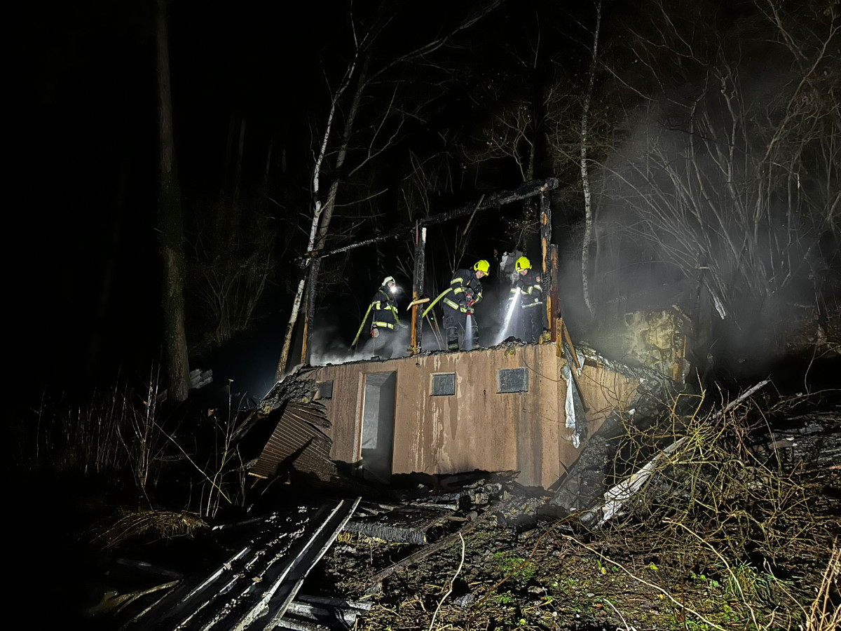 Na Táborsku shořela chata, hasiči s požárem bojovali tři hodiny