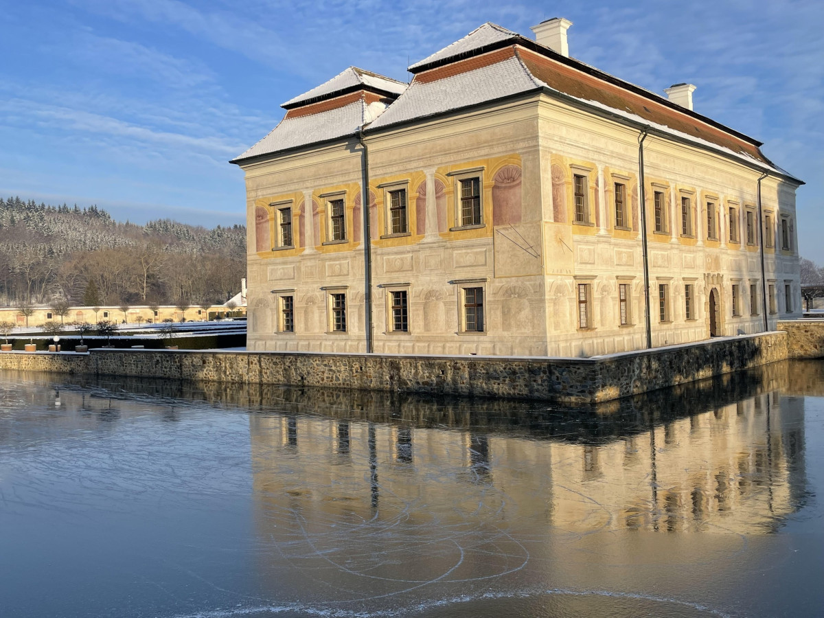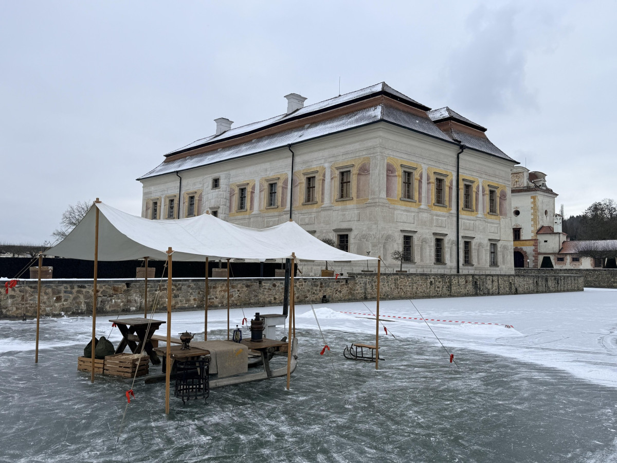 Neobvyklé kluziště boduje. Vodní příkop u Kratochvíle láká davy bruslařů