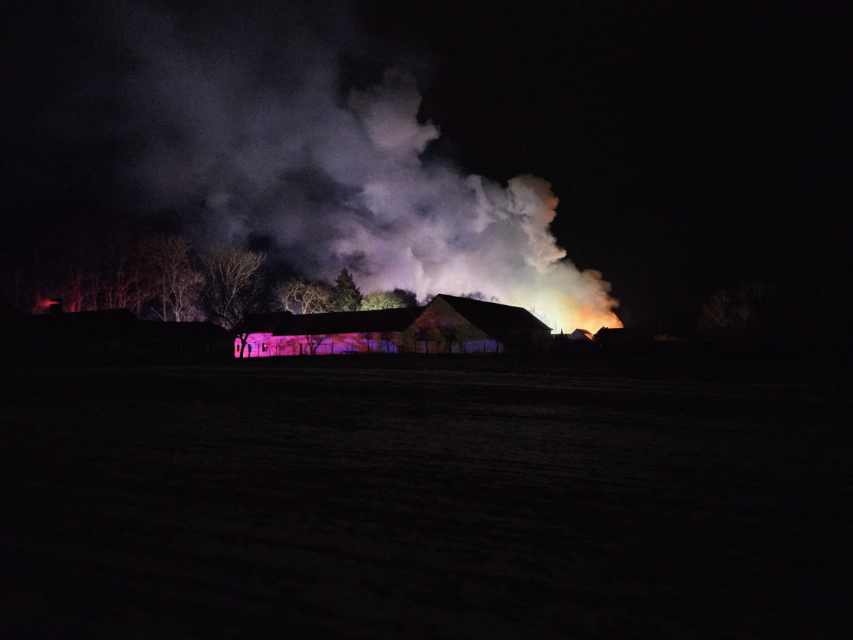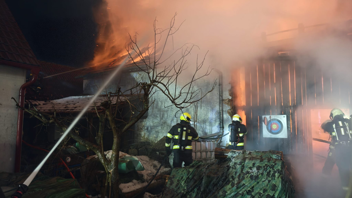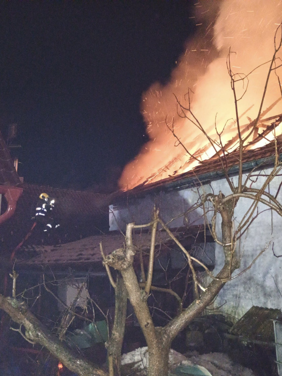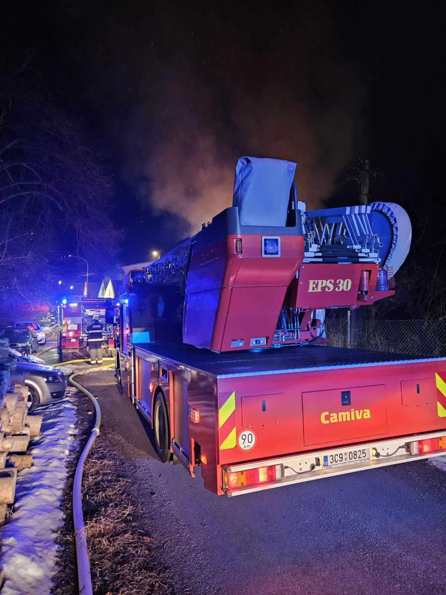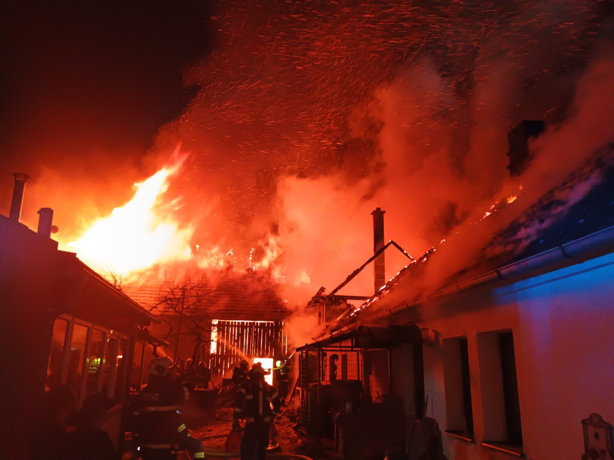 Rozsáhlý požár v Dolních Slověnicích. Oheň zasáhl velkou část stavení