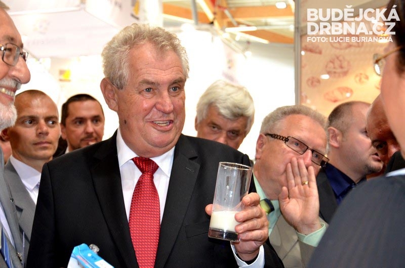 Prezident Miloš Zeman se sklenicí jihočeského mléka