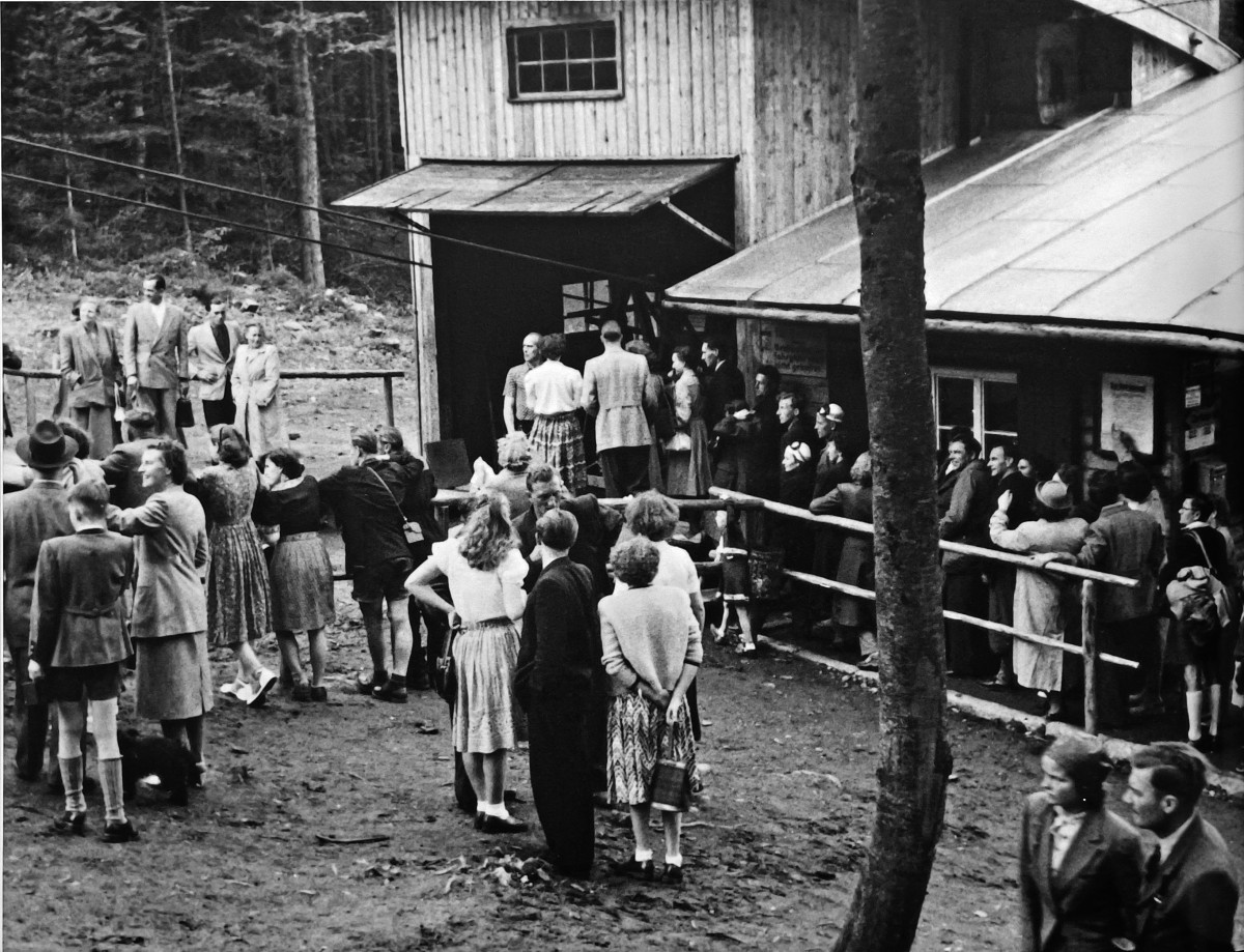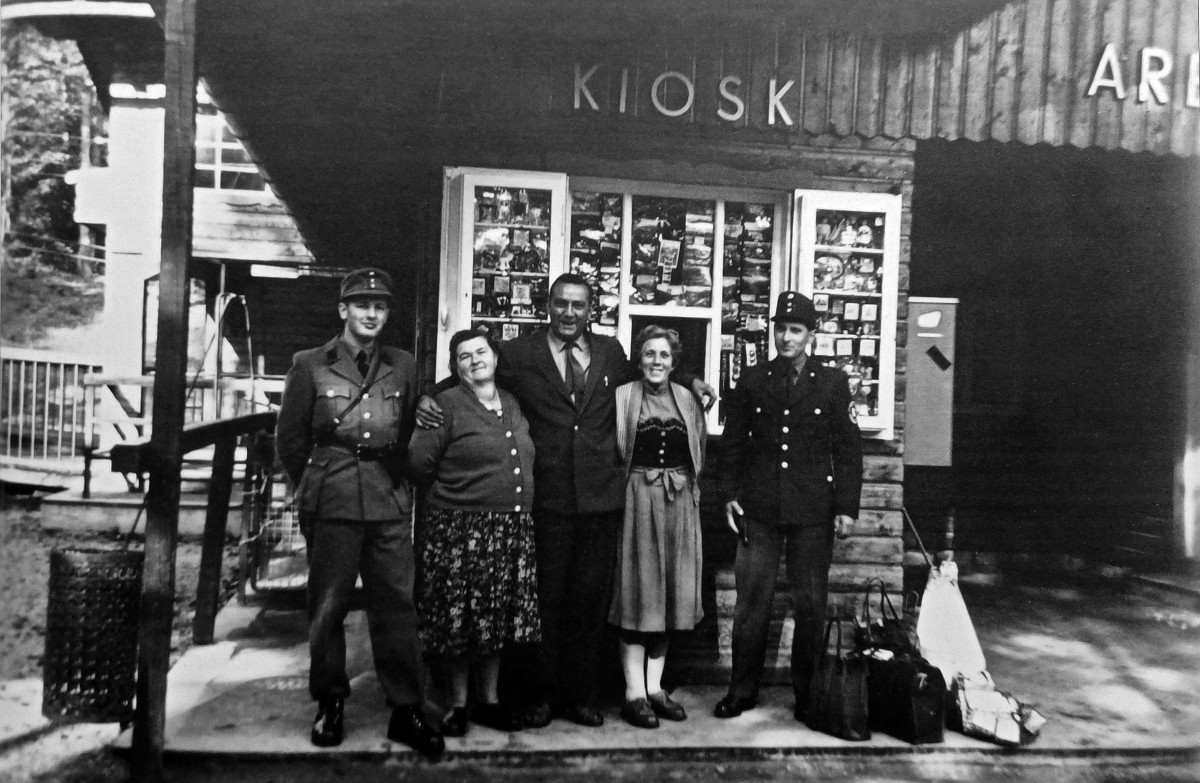 U kiosku bývalo velmi živo a veselo. S provozovateli pózují členové celní stráže a Bayerische Grenzpolizei. Policejní služebnu měli na nedalekém Brennesu.