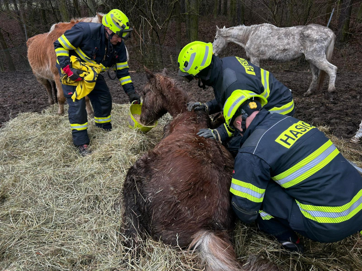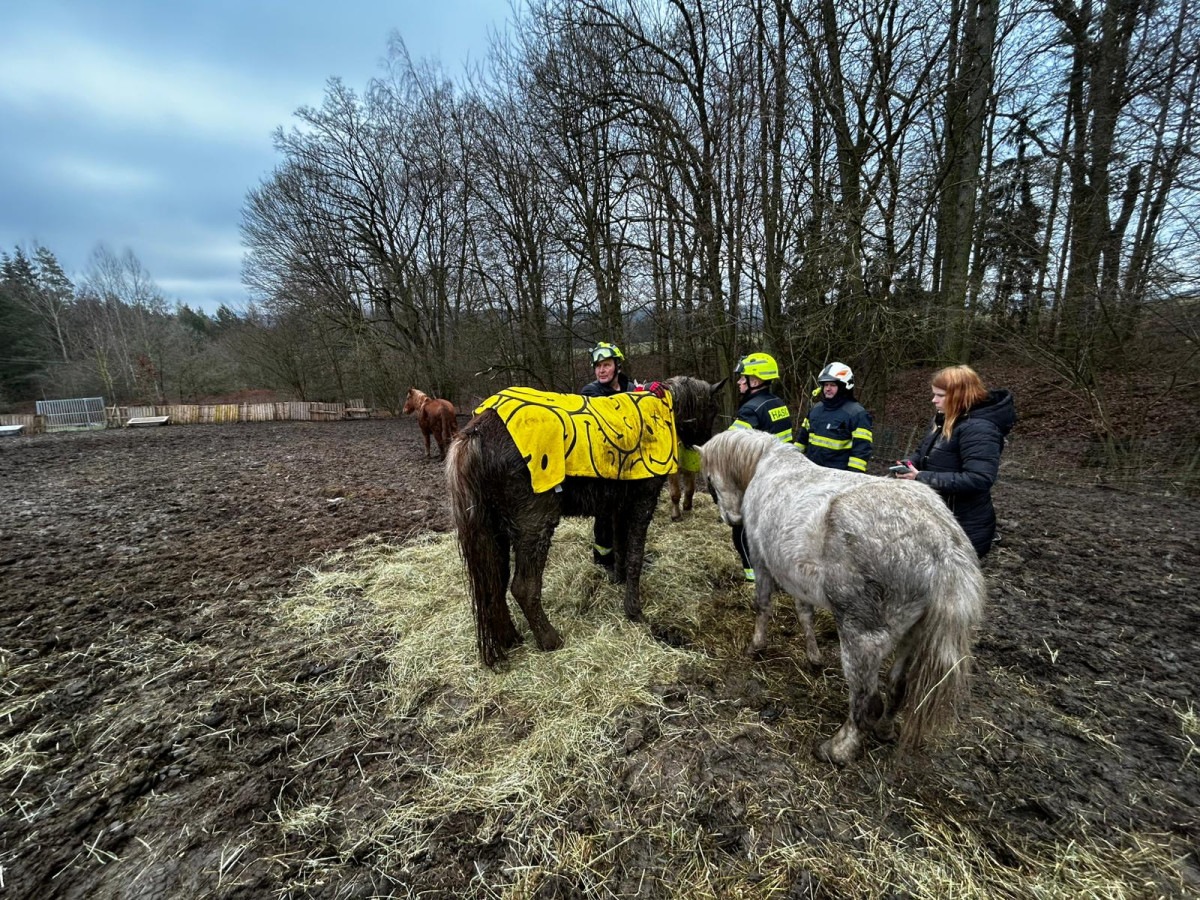 Hasiči v Noskově zachraňovali koně. Na pomoc vyrazil i jeřáb