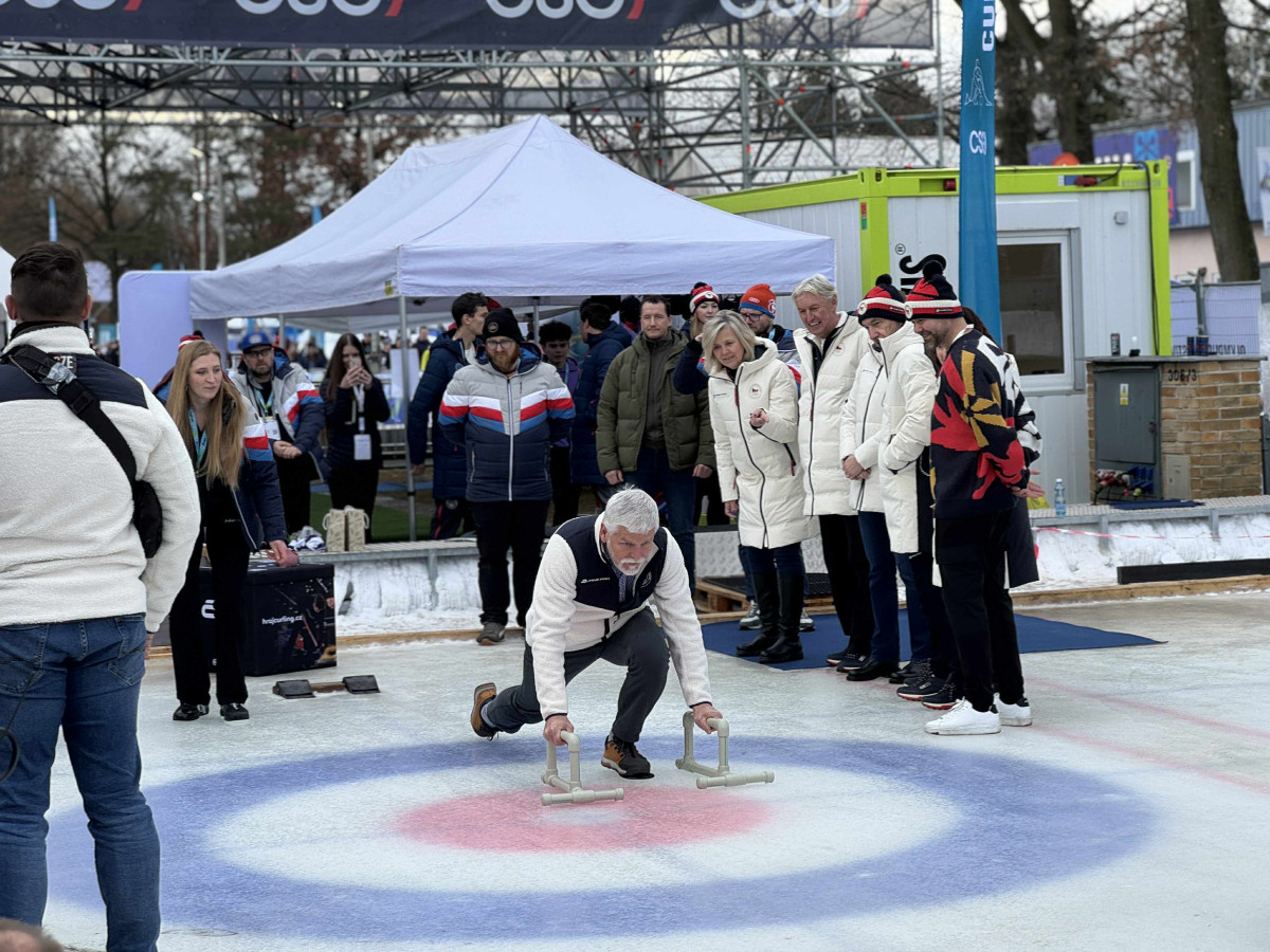 FOTO: Prezident se na olympijském festivalu vrhl na sport. Vyzkoušel curling i biatlon