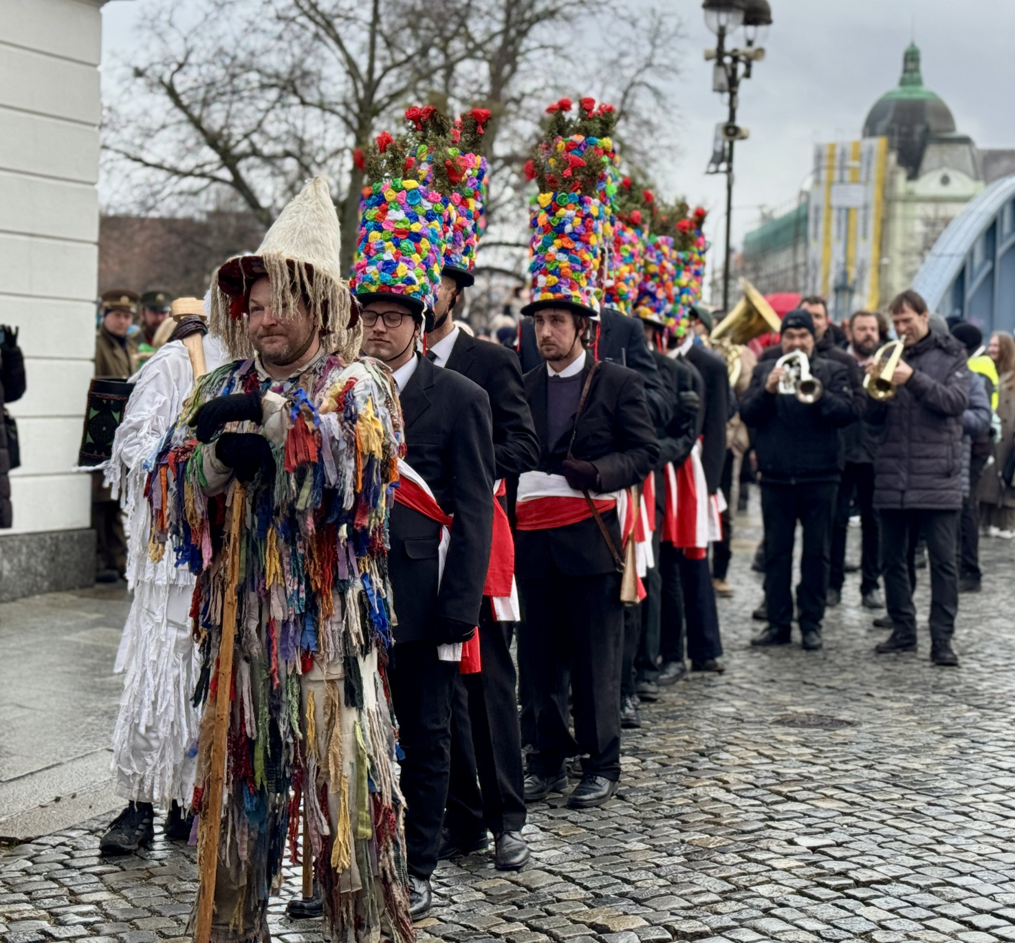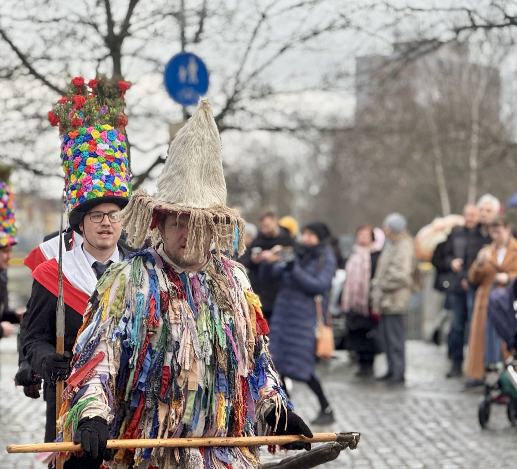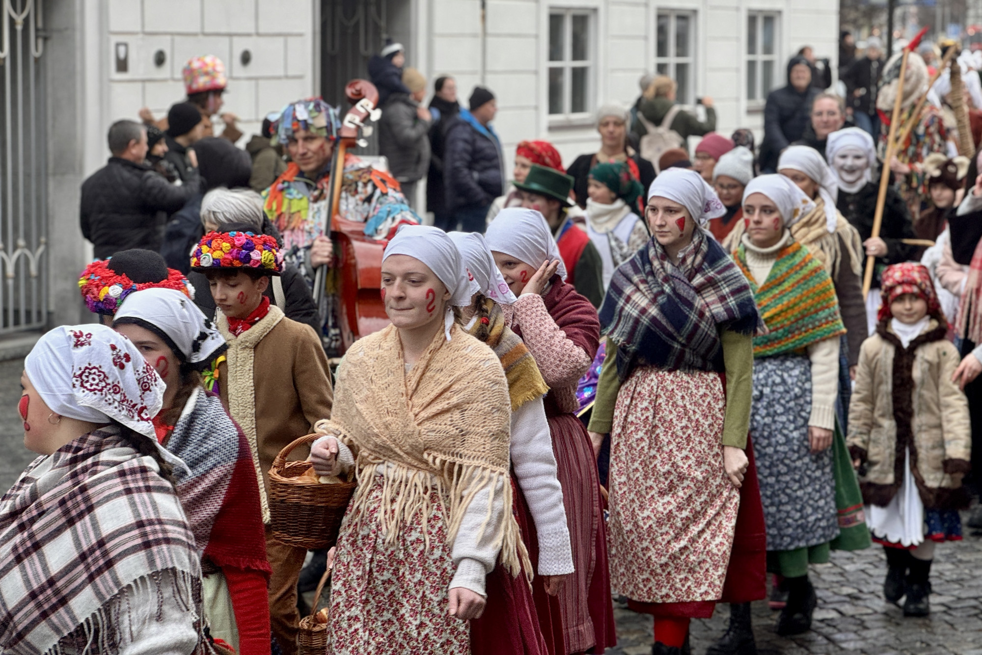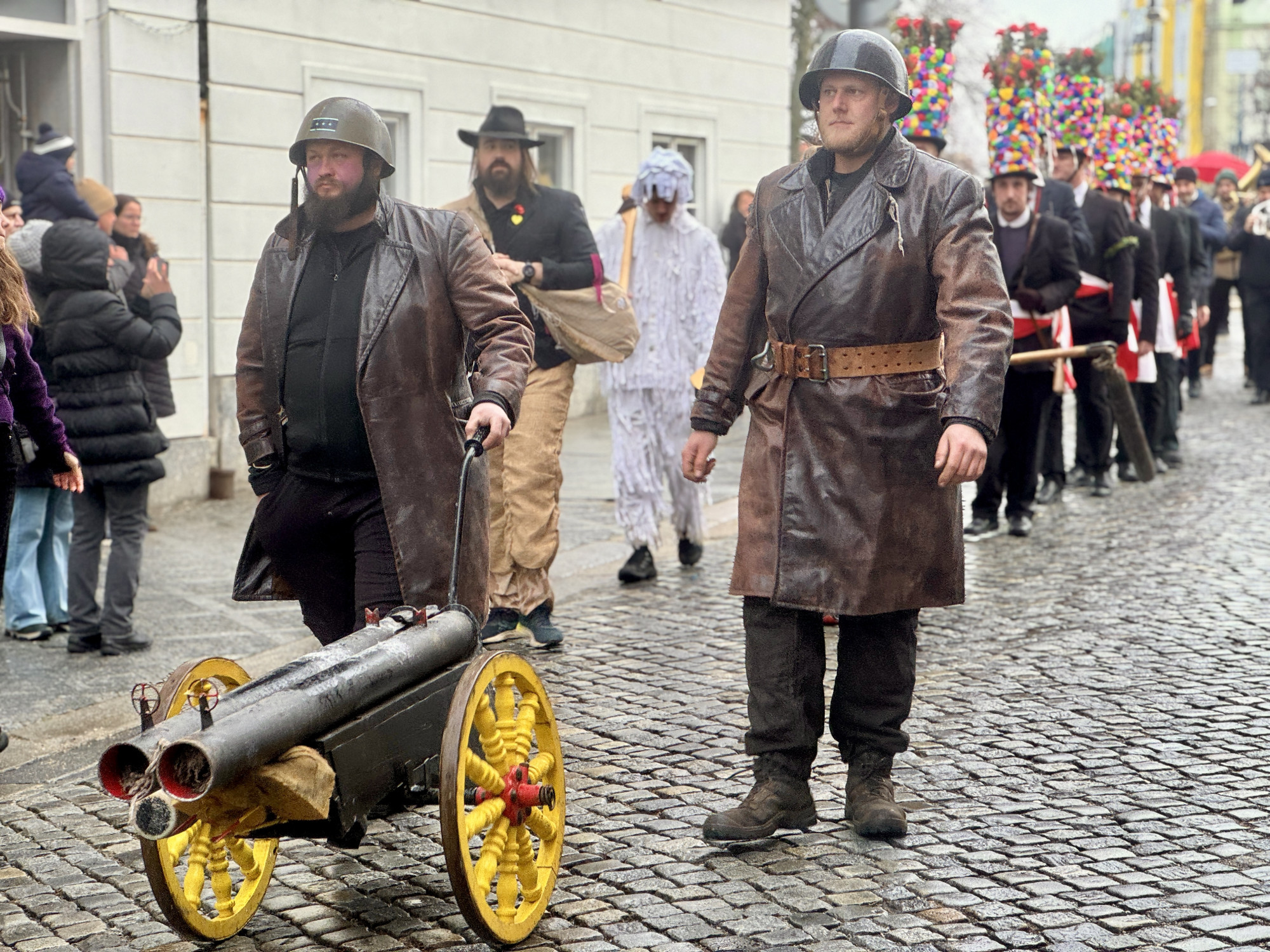 FOTO: Masopustní průvod prošel centrem Budějovic, děti polekal výstřel z děla