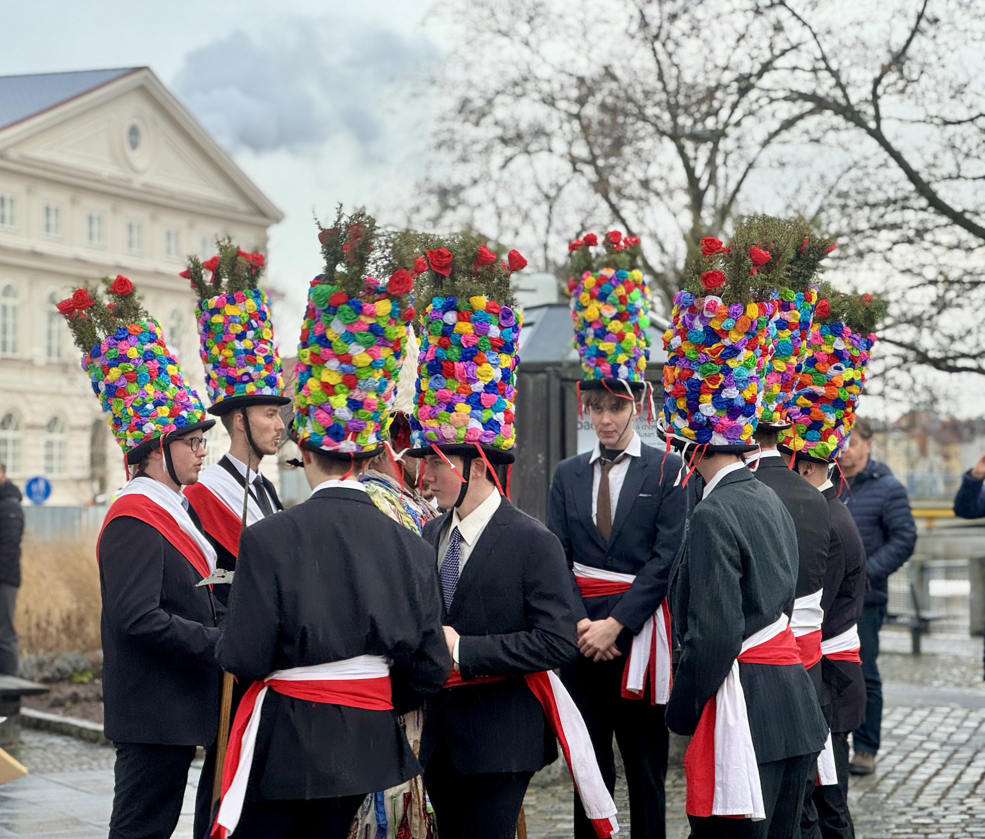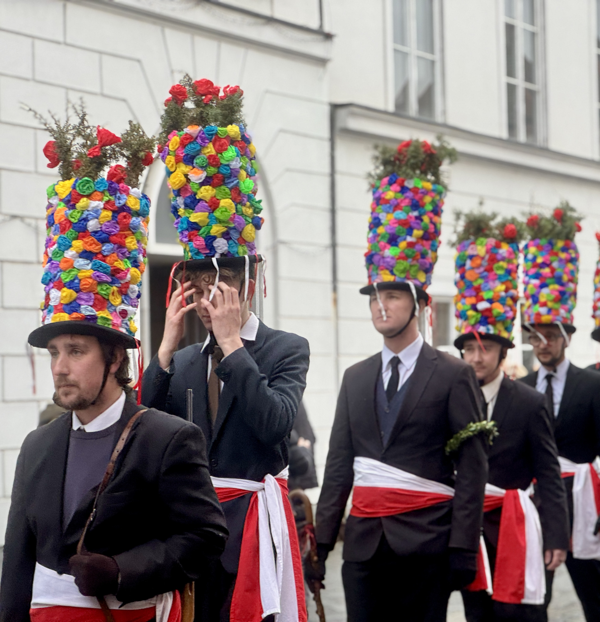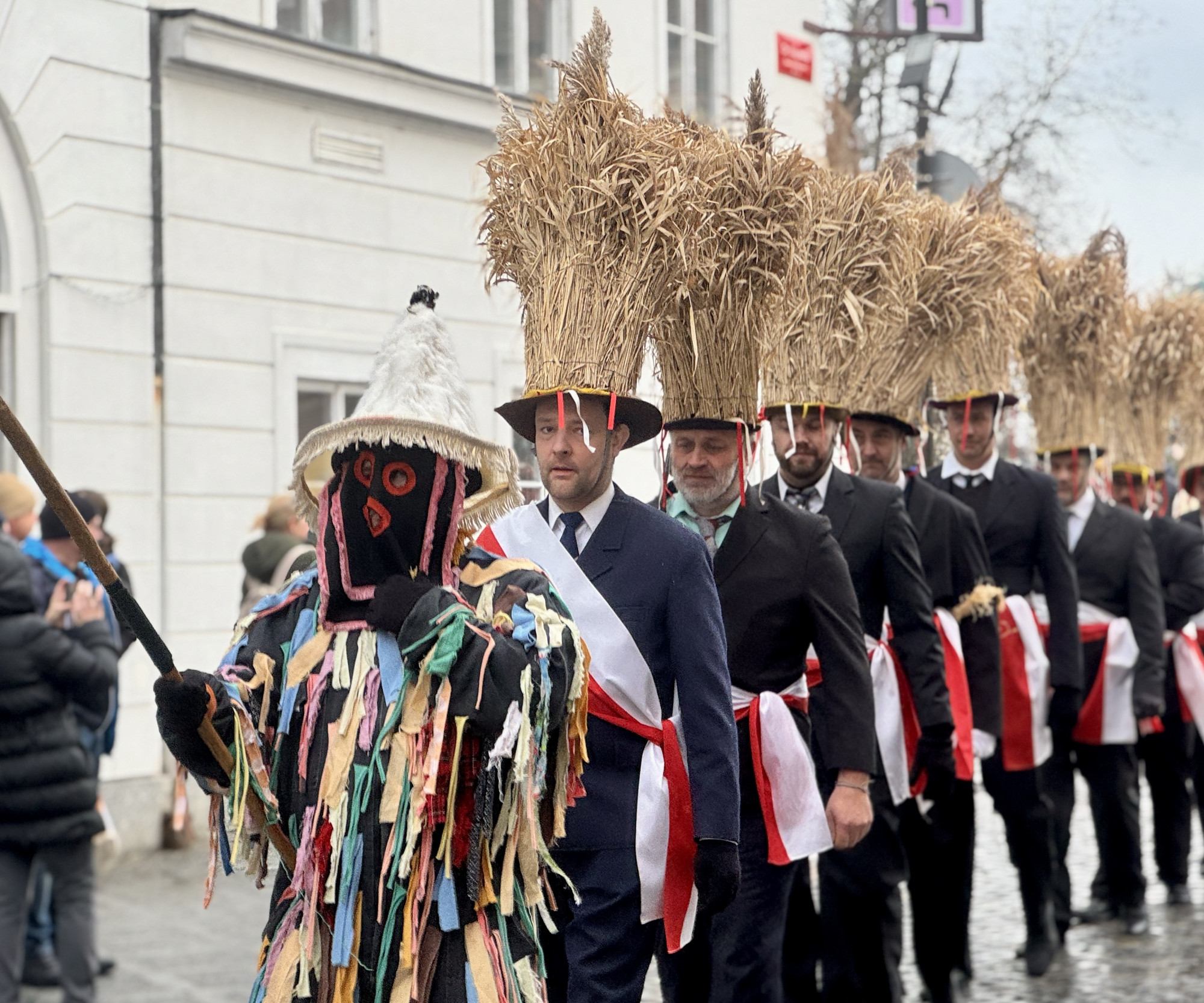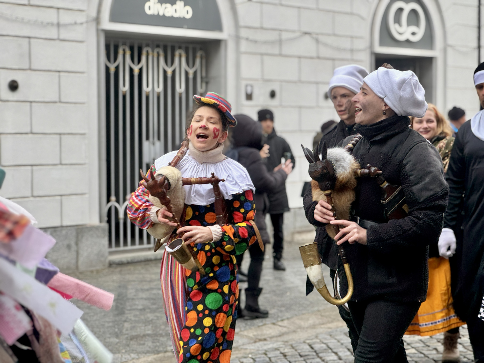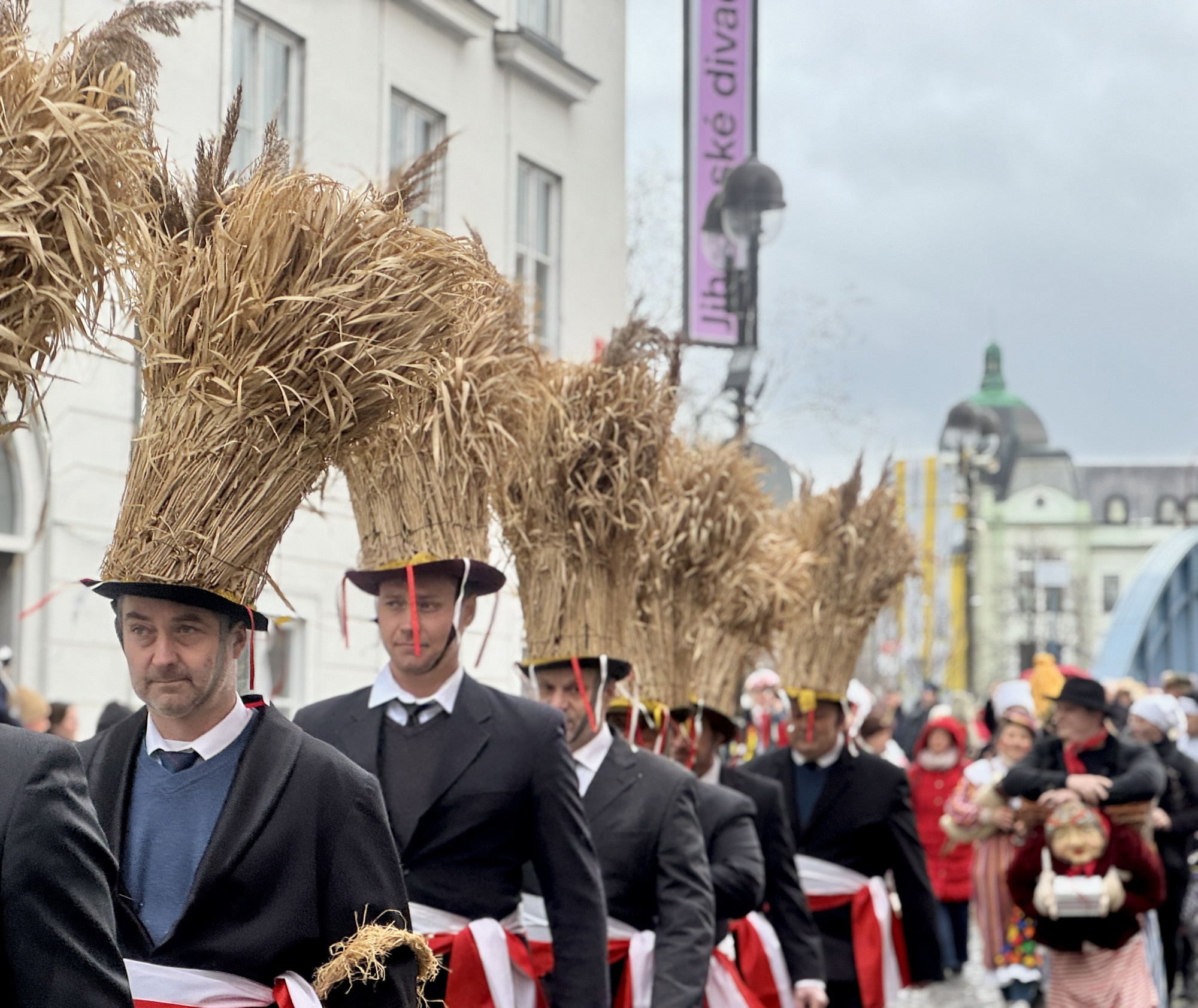 FOTO: Masopustní průvod prošel centrem Budějovic, děti polekal výstřel z děla