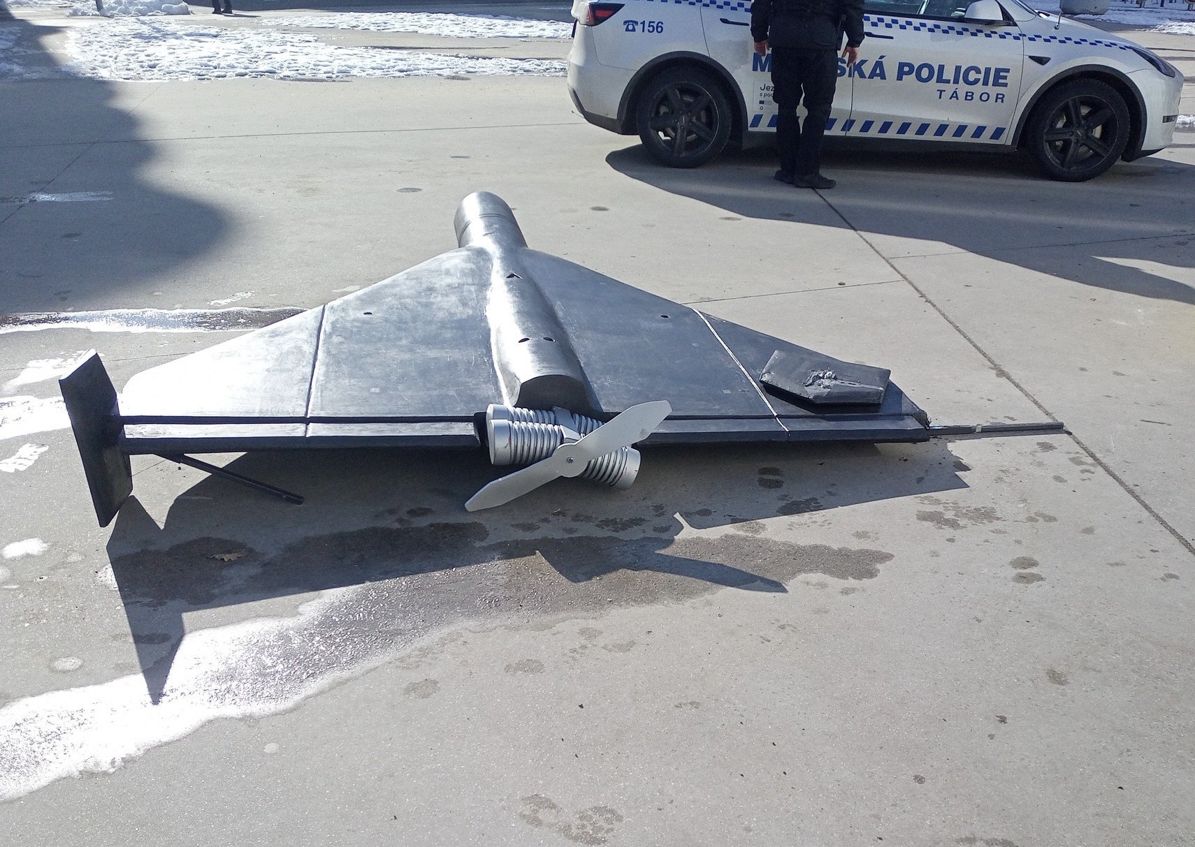 Žádný vandalismus se nekonal. Maketu ruského dronu poničily v Táboře hrající si děti