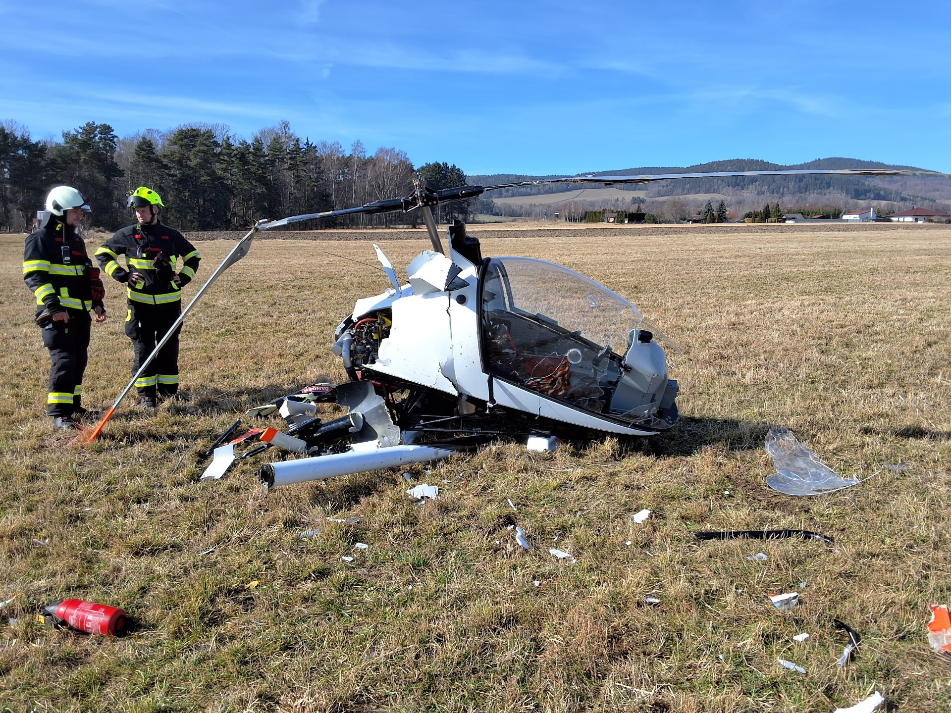 Na Českokrumlovsku se zřítil malý vrtulník. Příčinu nehody vyšetřuje policie