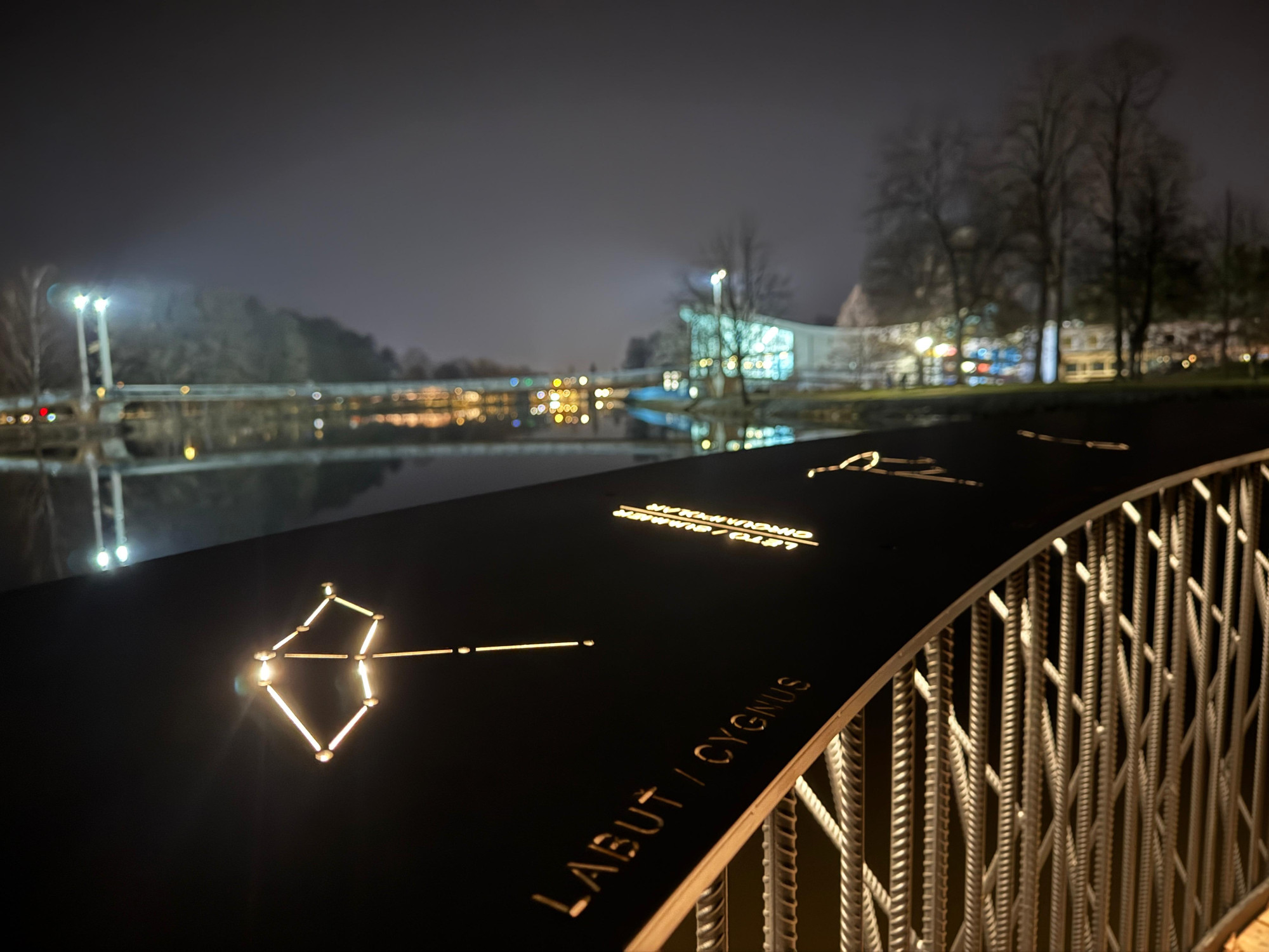 Na soutoku Malše a Vltavy se rozsvítilo nové molo. V noci na něm září souhvězdí