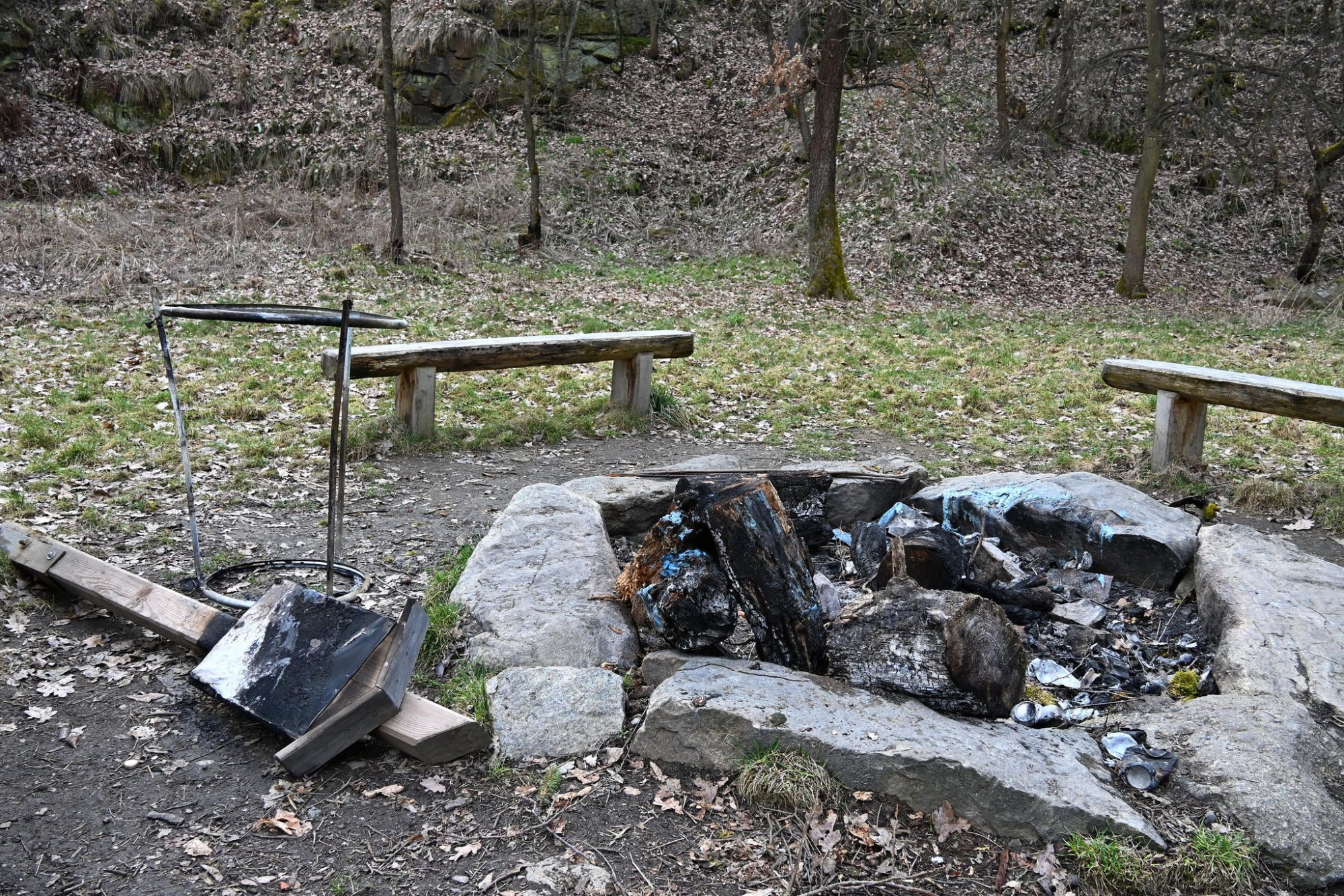 Vandalům neuniklo ohniště na Vohybale, spálili koš i ceduli. Město zvažuje fotopasti