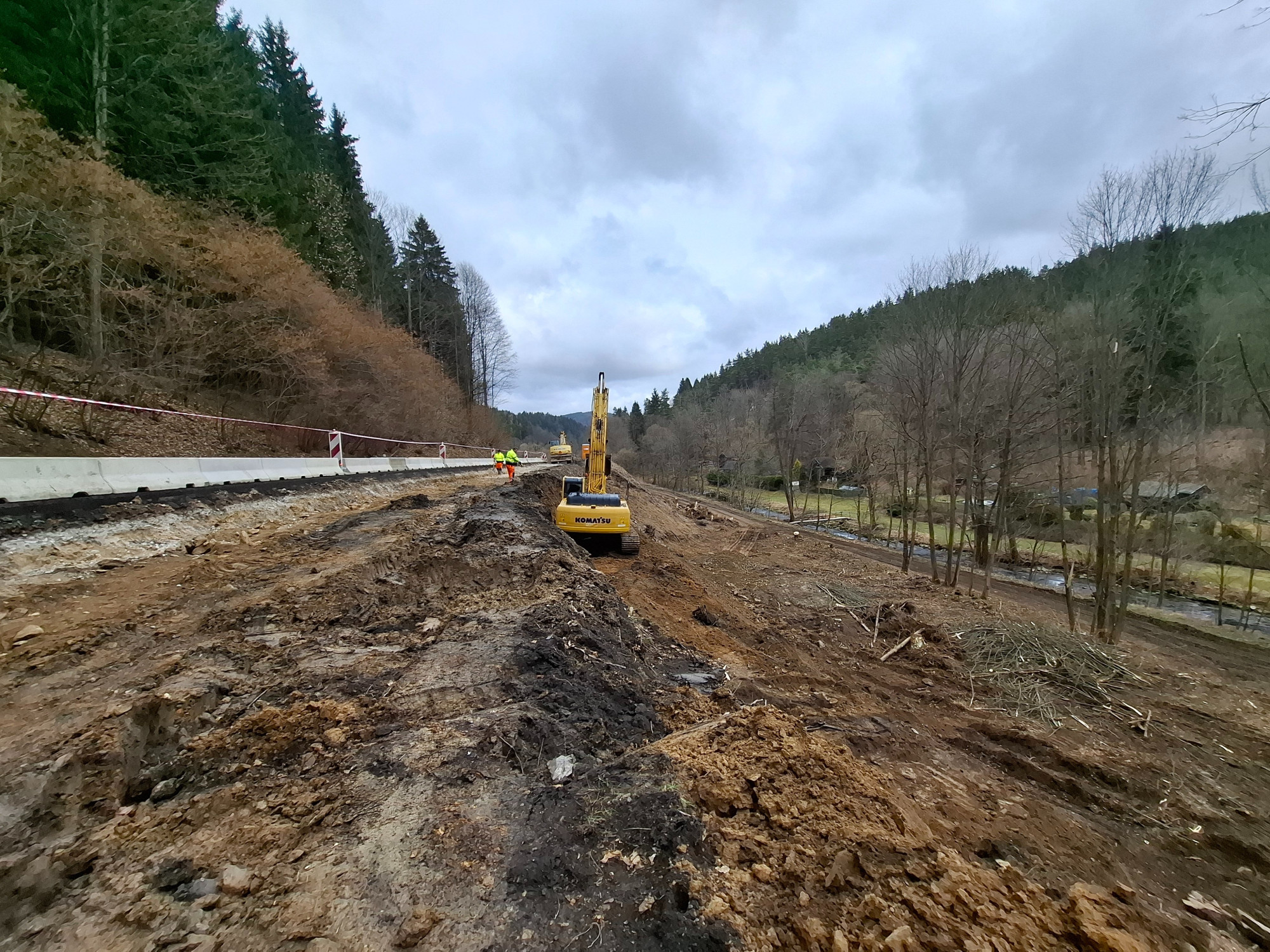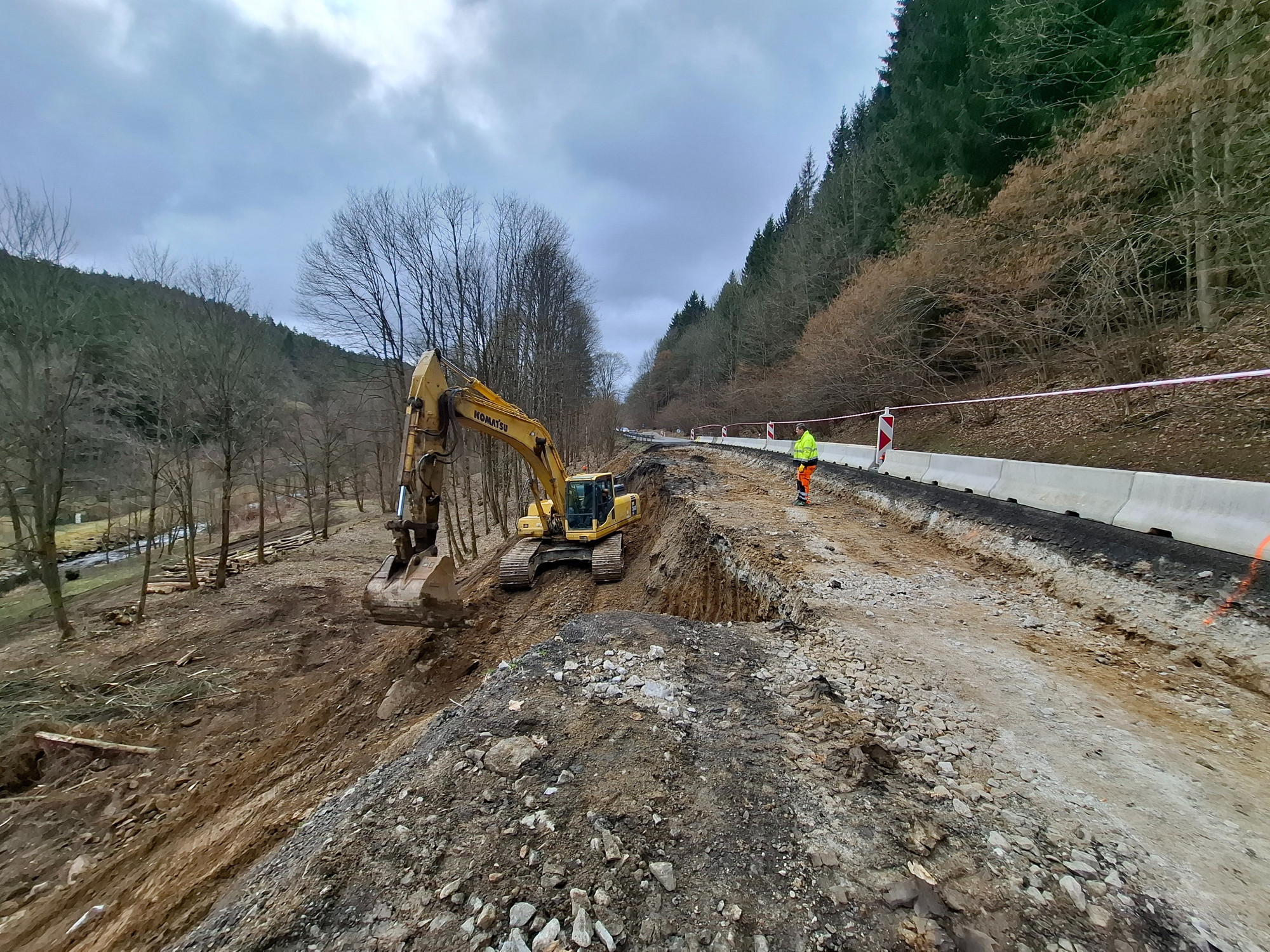 Sanace svahu u Vimperka pokračuje. Silničáři odtěžují zeminu, provoz řídí semafory