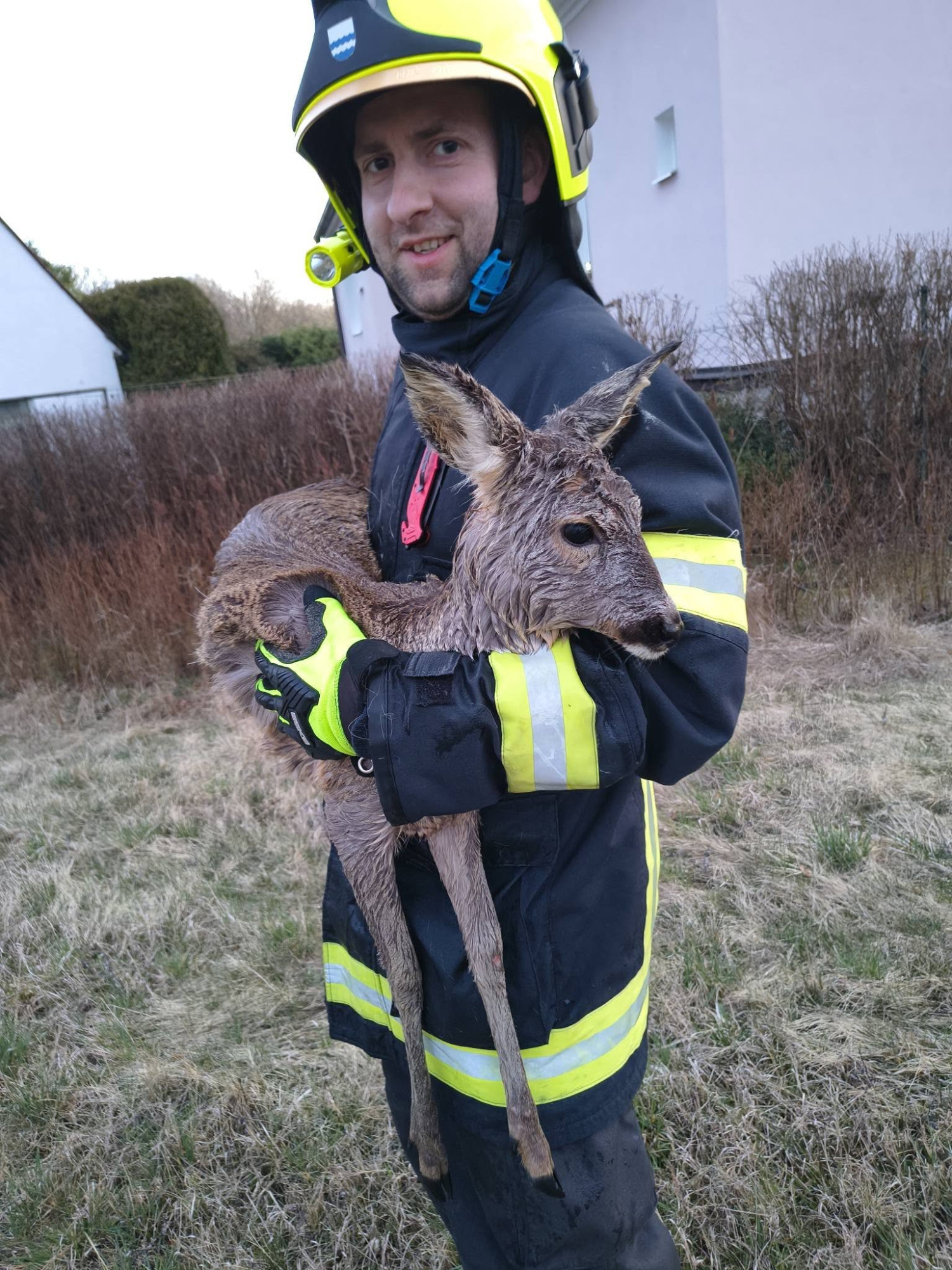 Srna uvízla ve splavu a začala se topit. Hasiči ji během pár minut zachránili