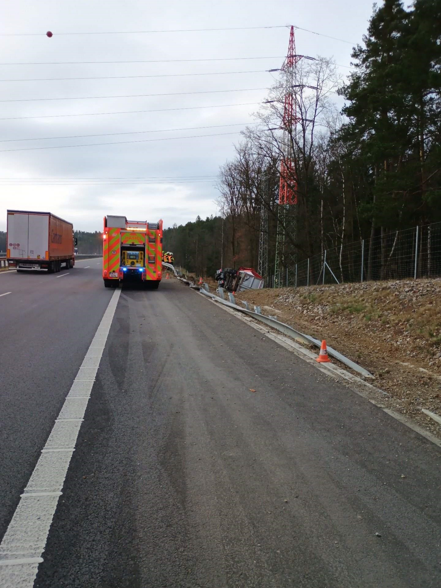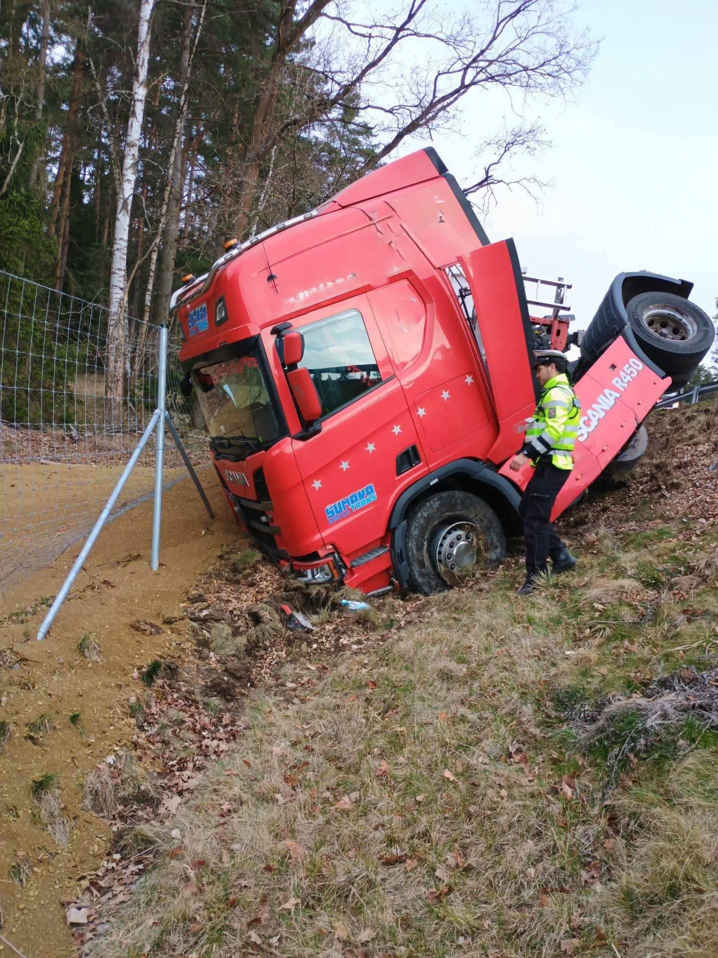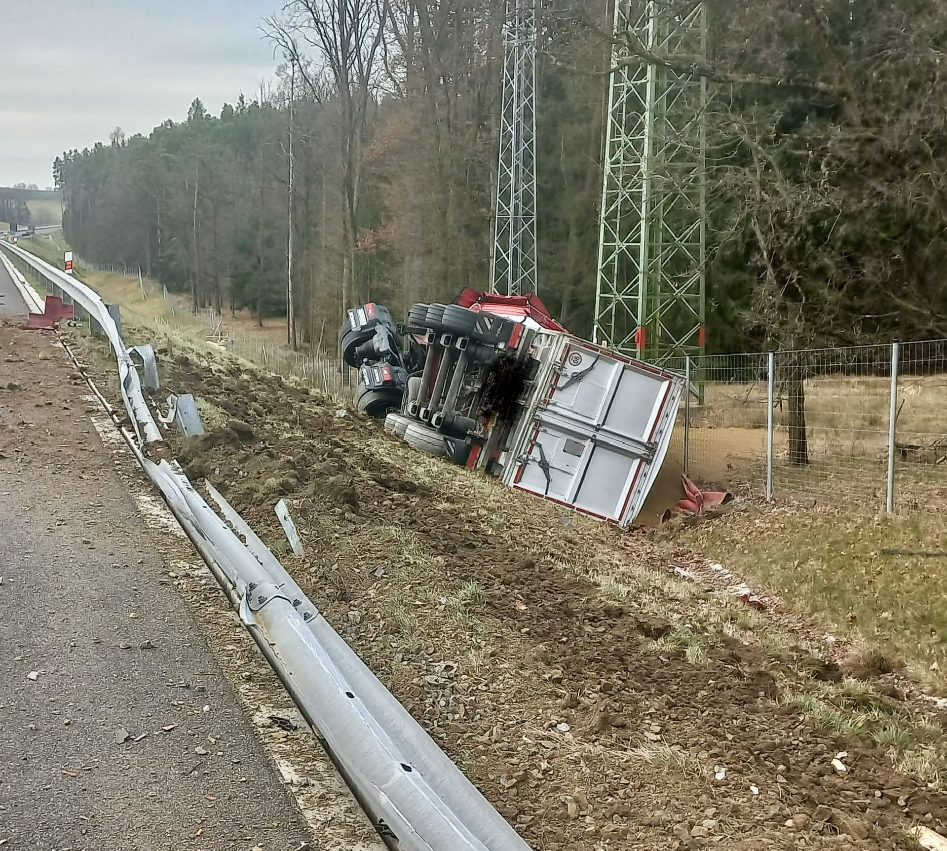 Řidič kamionu se nevěnoval řízení, skončil v příkopu u dálnice