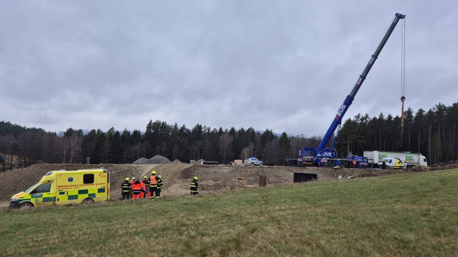 Dělník na stavbě dálnice D3 spadl do jímky, vážně si poranil hlavu