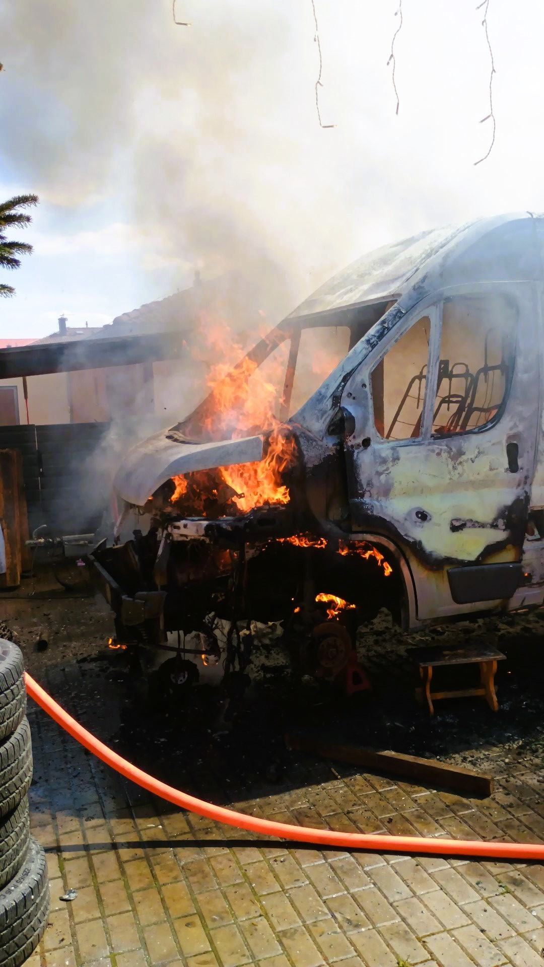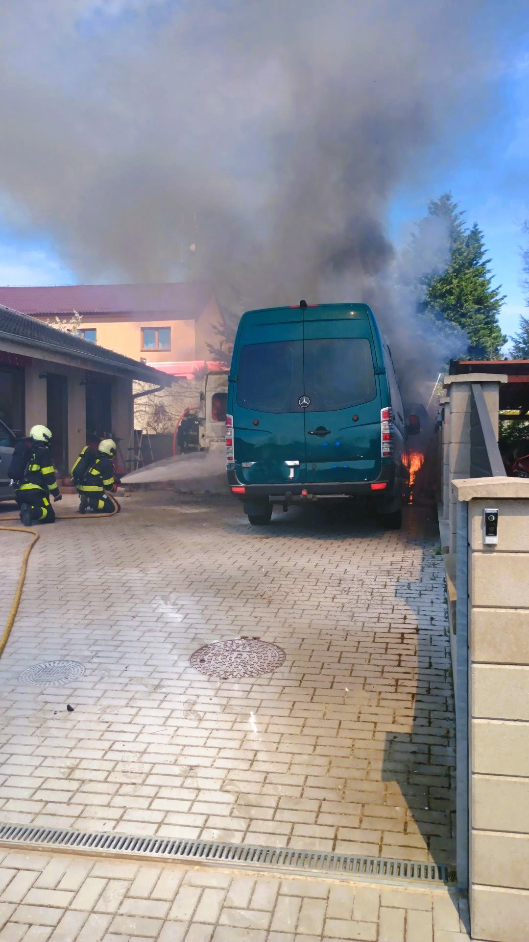 Jiskra od svařování rozpoutala požár tří aut. Oheň popálil dva lidi