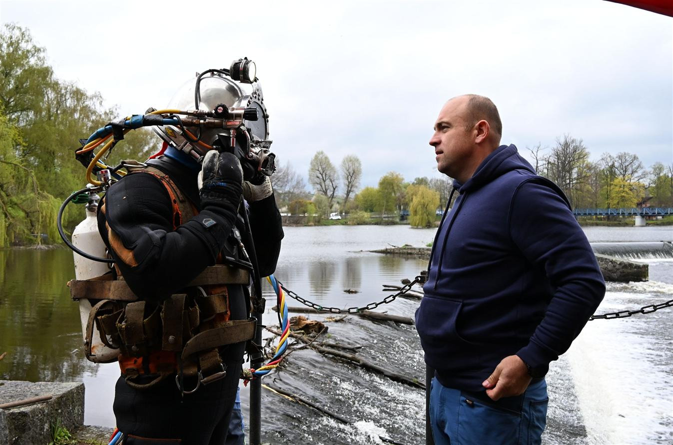 Pod hladinu Otavy. Potápěči se brodili bahnem při obnově česel Křižíkovy elektrárny