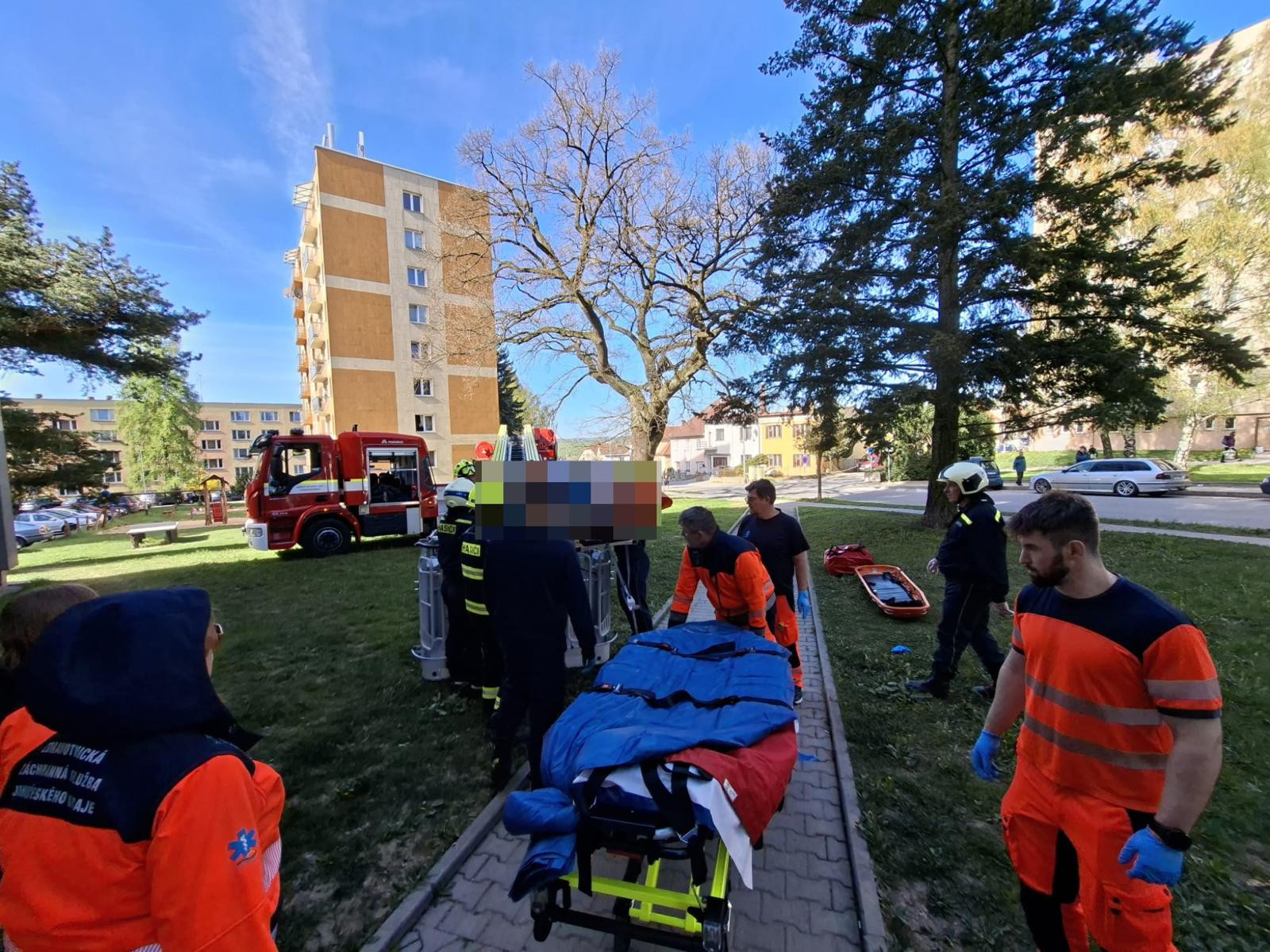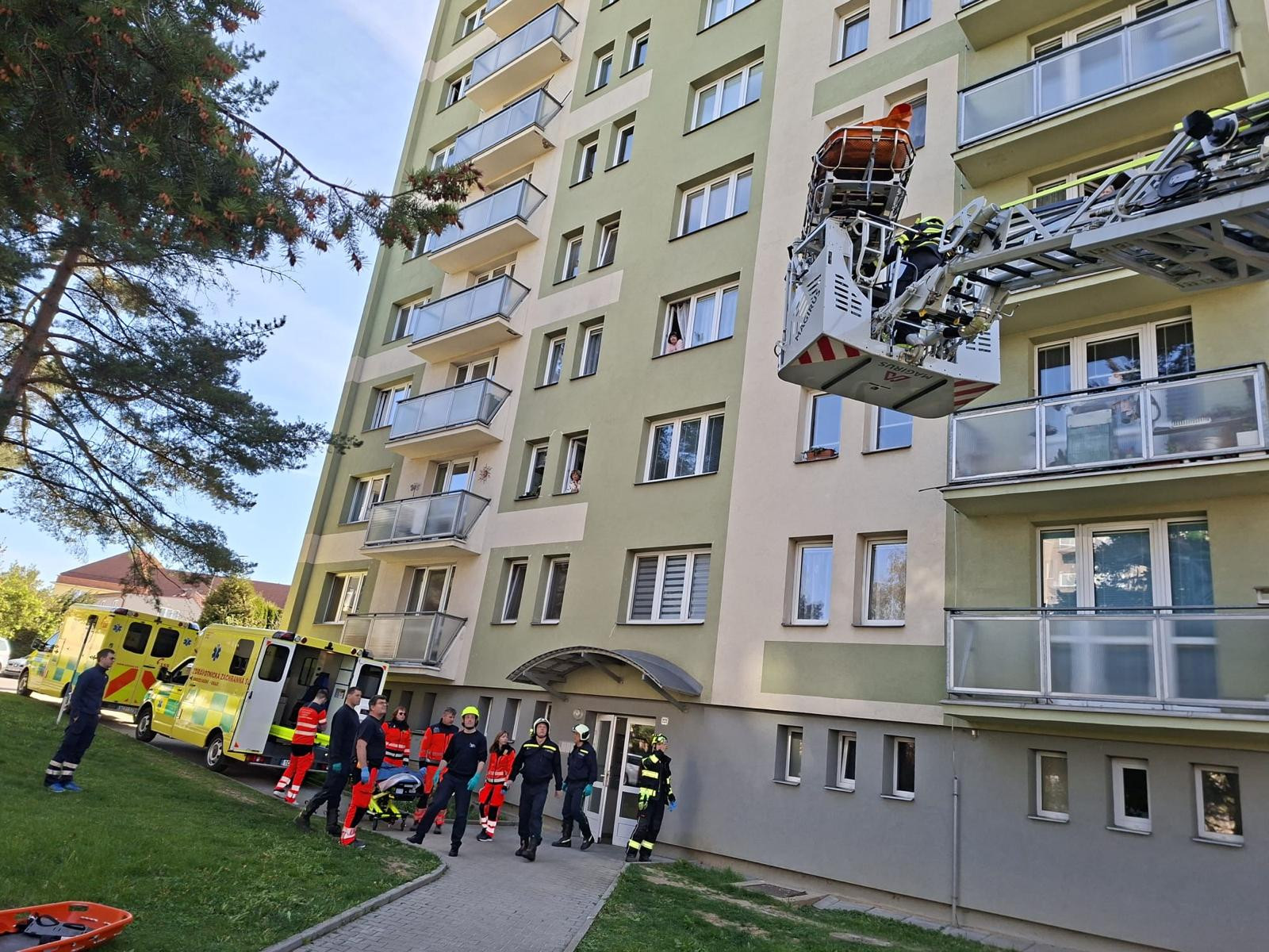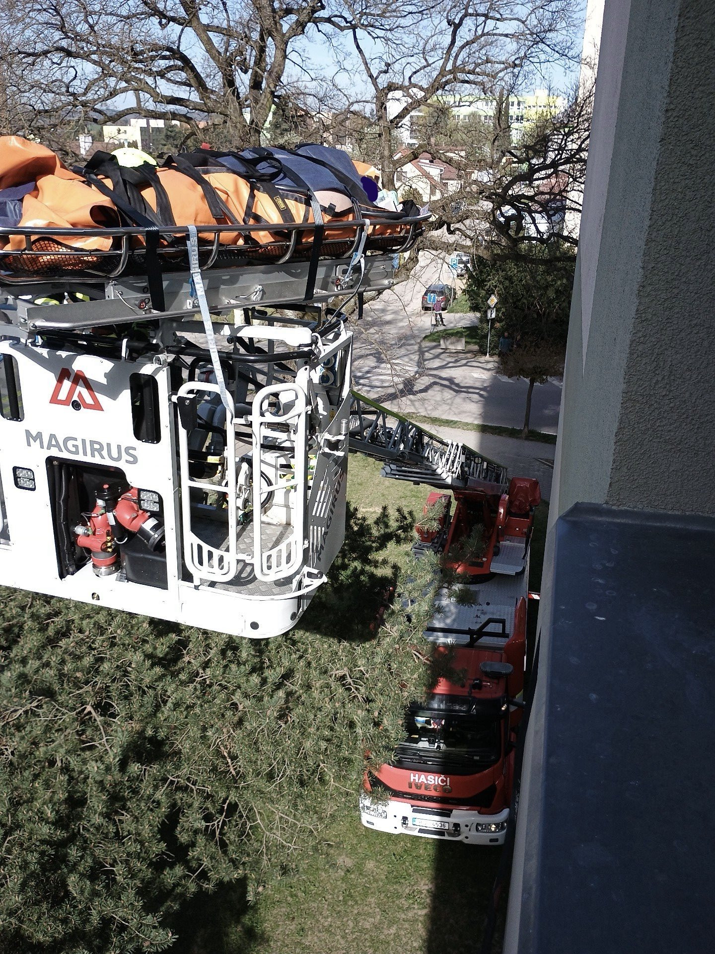 Po schodech to nešlo, tak ho vzali oknem. Pacienta snesli hasiči za pomoci žebříku