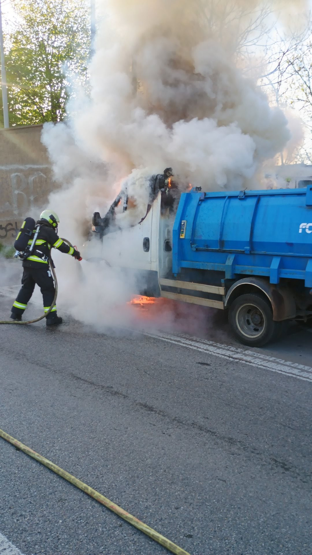 V Budějovicích na Strakonické hoří popelářské auto, hašení komplikuje dopravu