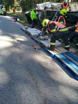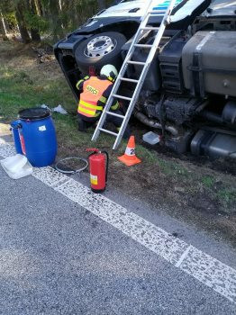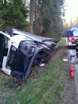 Divočák způsobil nehodu u Volar. Kamion skončil v příkopu, silnice je uzavřená