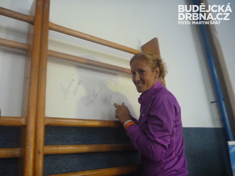 Mirka Knapková se společně se Zuzanou Hejnovou a Kateřinou Neumannovou podepsaly na zeď tělocvičny