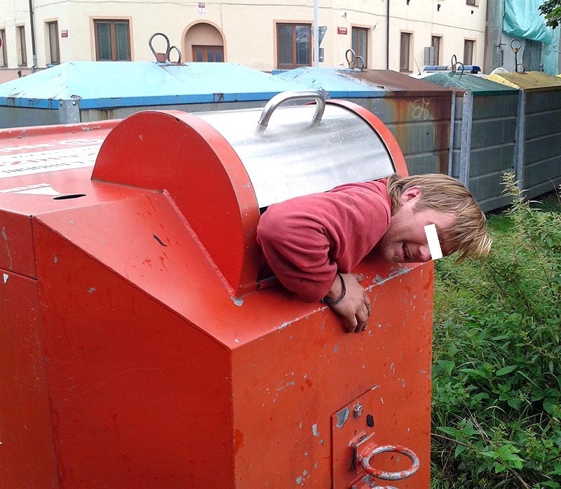Uvízl v kontejneru na elektroodpad, vlezl tam po hlavě