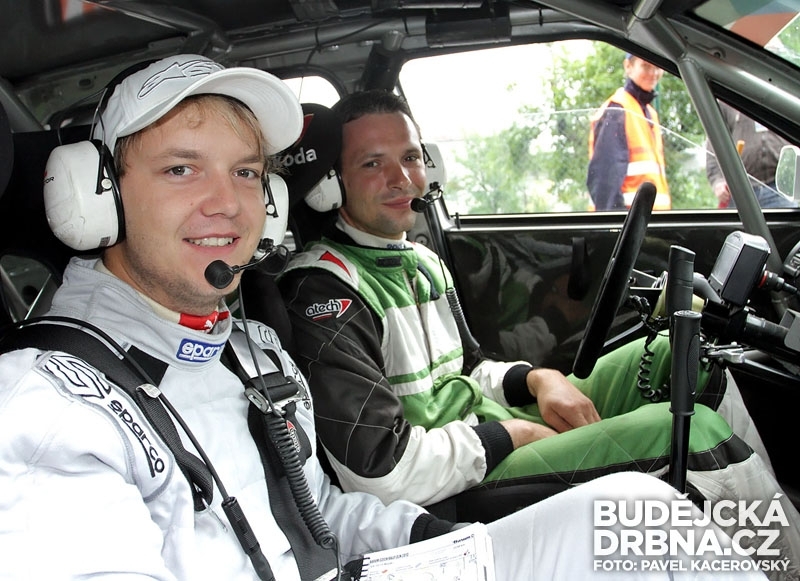 Jan Jinderle junior (vlevo) po boku pilota Jiřího Máši