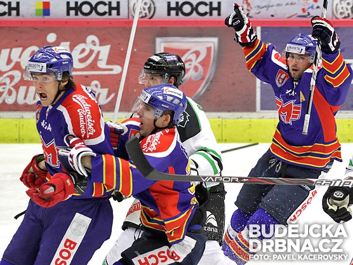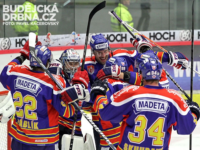 Zasloužená radost hokejistů Motoru po úspěšném zápase