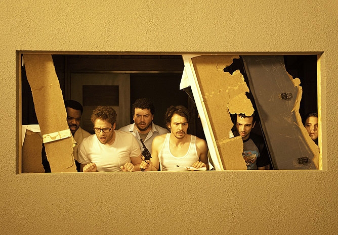 Craig Robinson, Seth Rogen, Danny McBride, James Franco, Jay Baruchel a Jonah Hill ve filmu Apocalypsa v Hollywoodu