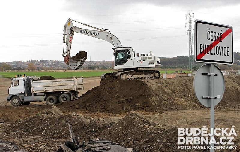 Práce na výstavbě kruhového objezdu u hřbitova v Mladém
