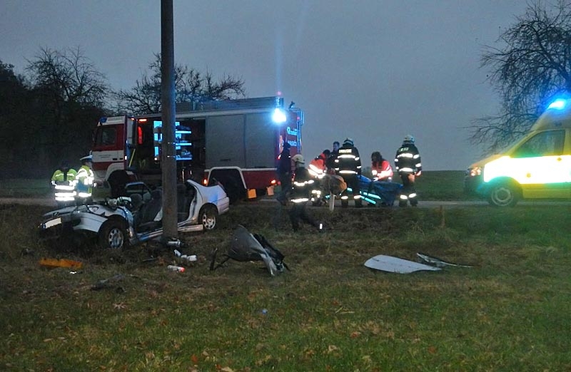 Zdemolovaný Peugeot 306 po ranní nehodě nedaleko Týna nad Vltavou