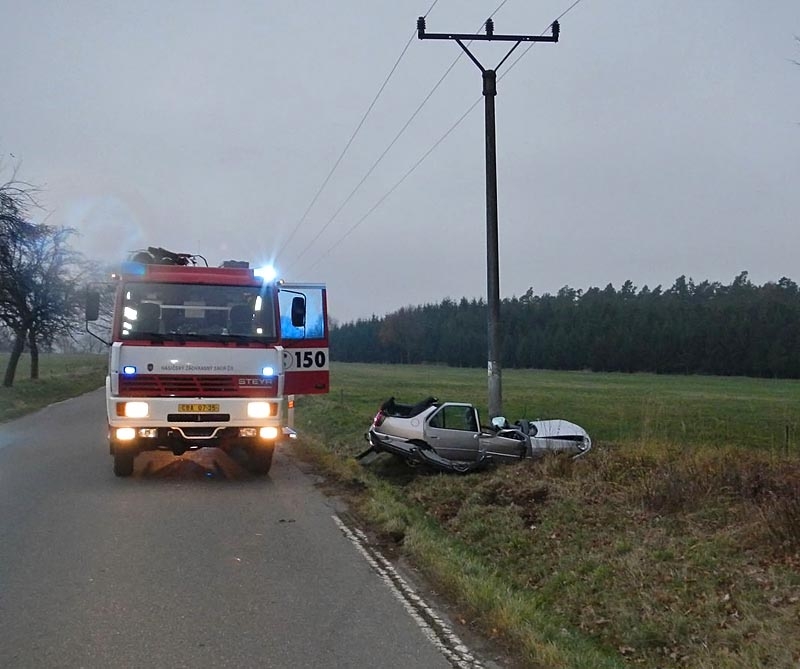 Přes cestu mu přeběhla zvěř, hasiči ho museli vystřihat