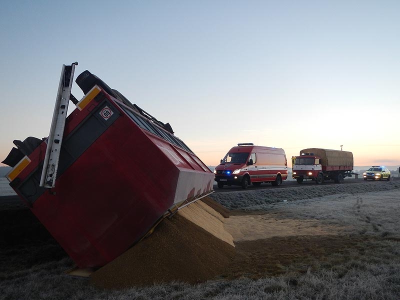 Havarovaný nákladní automobil mezi Dasným a Češnovicemi
