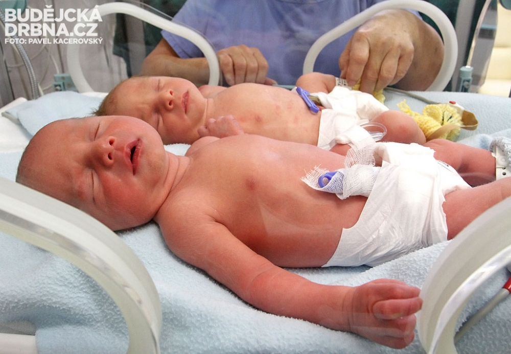 Deniel a Dominik (v popředí) Fošumovi z Římova jsou prvními jihočeskými miminky roku 2014