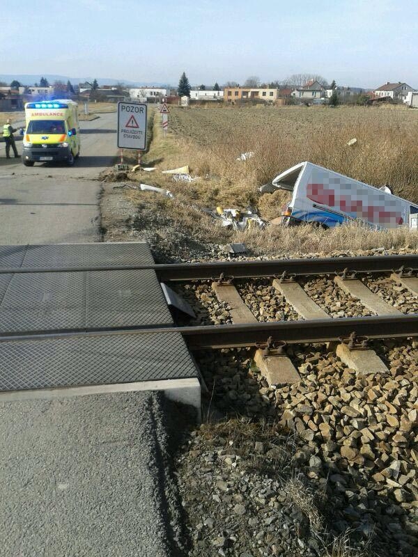 Řidič zdemolované dodávky měl při srážce s vlakem štěstí