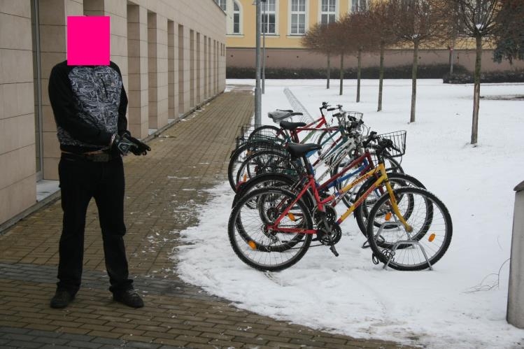 Zloděj kol na jednom z míst činu - před terminálem budějcké nemocnice
