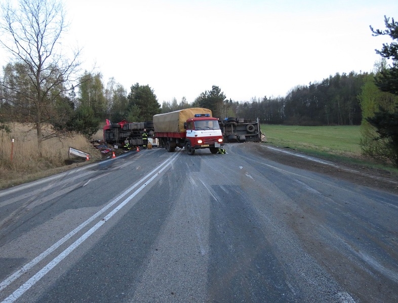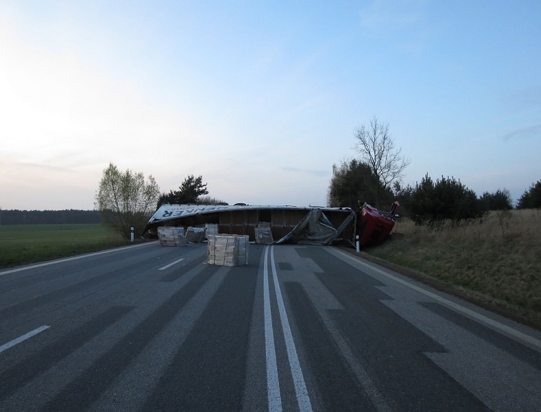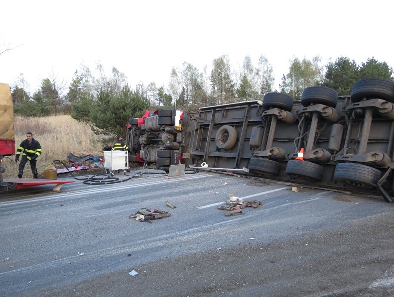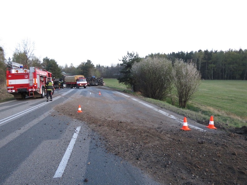 Opilý Polák převrátil u Kamenného Újezdu kamion