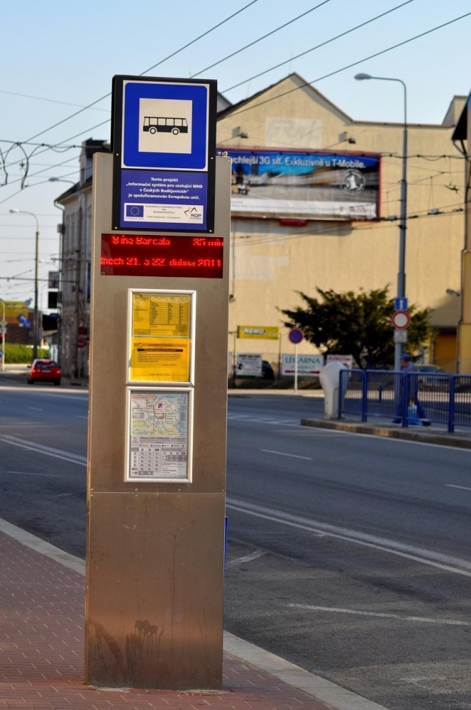 Digitální označník zastávky MHD na budějcké Nádražní ulici