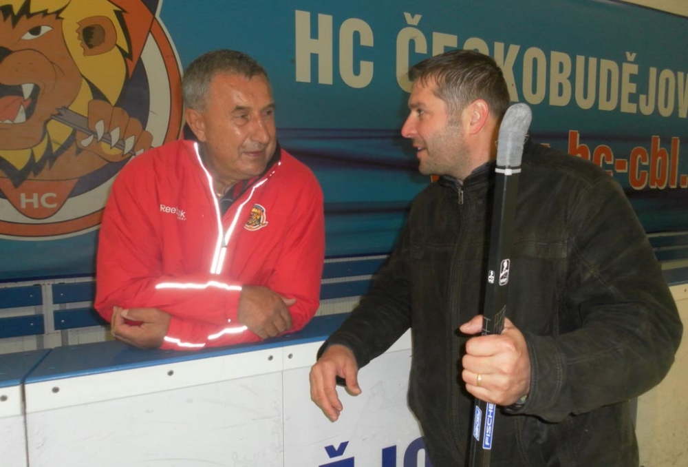 Jaroslav Pouzar (vlevo) v rozhovoru s ředitelem Domova Libníč a CSS Empatie Aloisem Ambrožem ve chvíli odpočinku