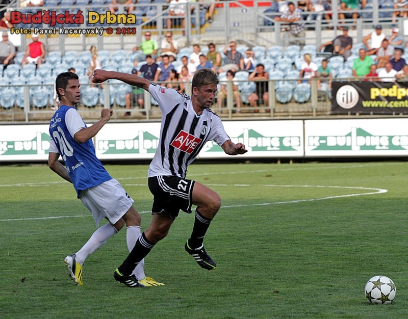 Domácí duel s Táborskem Dynamo v 1. kole FNL zvládlo a vyhrálo 2:0. Na snímku Kalod uniká Javorkovi