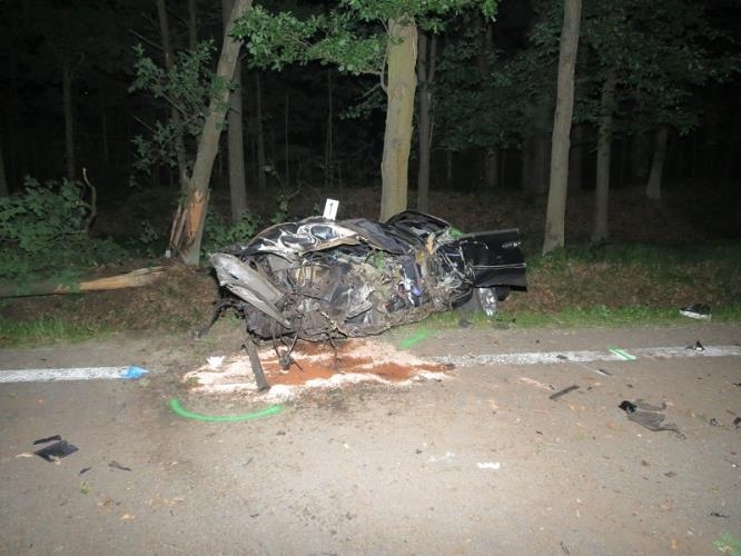 Zdemolovaný ford po nárazu do stromu u Majdaleny
