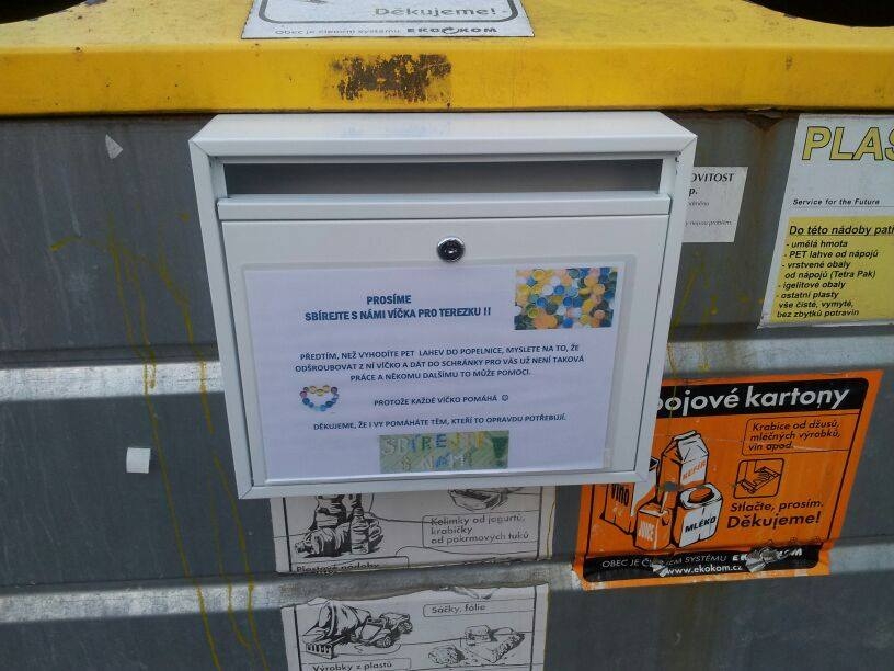 Schránka na plastová víčka v ulici U Lesa