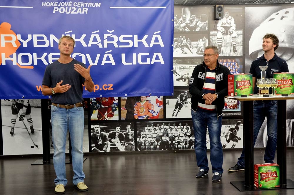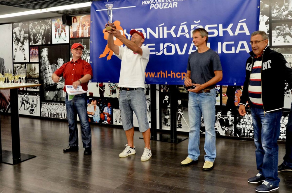 Předání putovního poháru mistrů Rybníkářské hokejové ligy